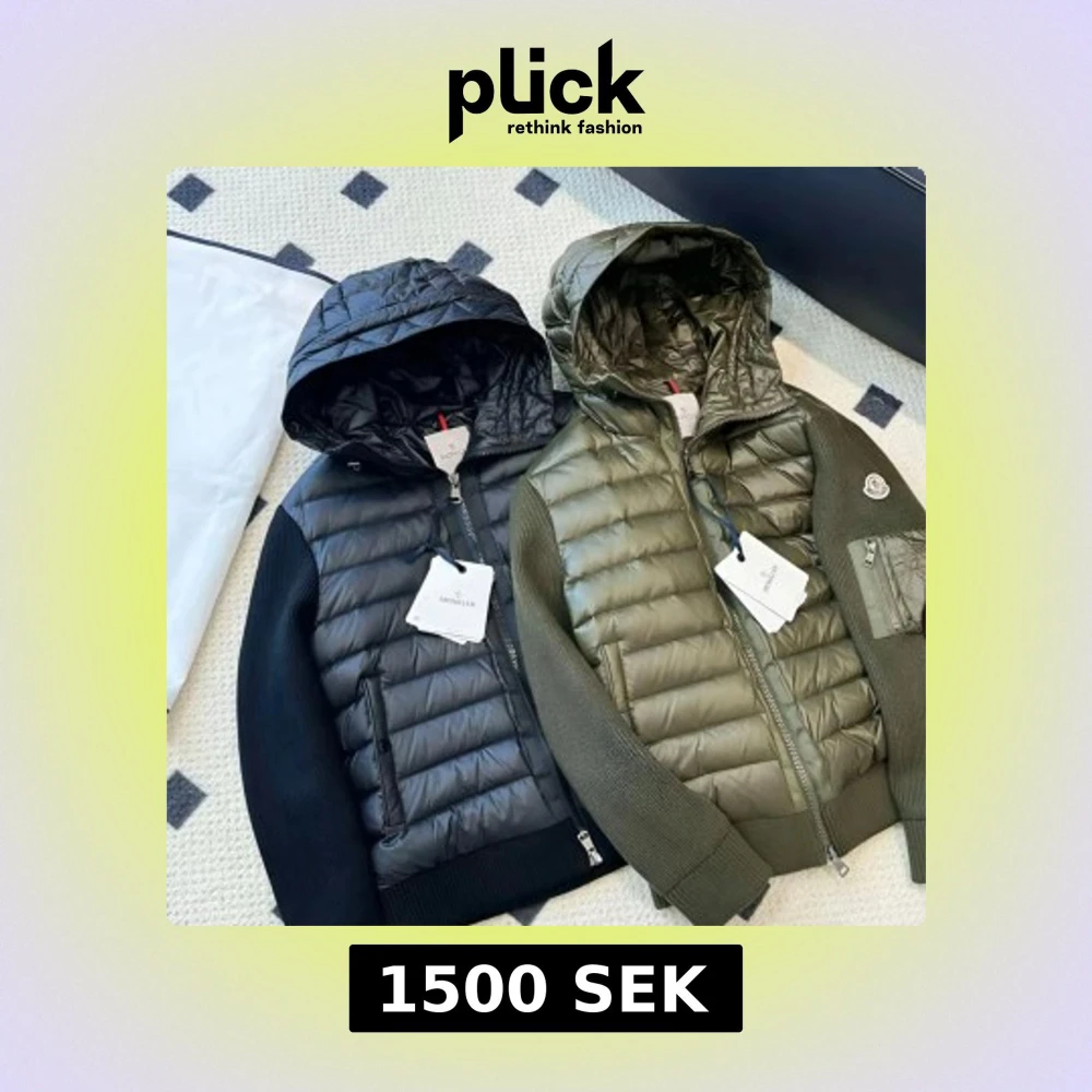 Två stilrena pufferjackor från Moncler, en i svart och en i olivgrön. Båda har quiltad front, stickade ärmar och huva. Jackorna har dragkedja framtill och praktiska fickor. Perfekt för dig som vill ha en snygg och funktionell look under kyliga dagar.