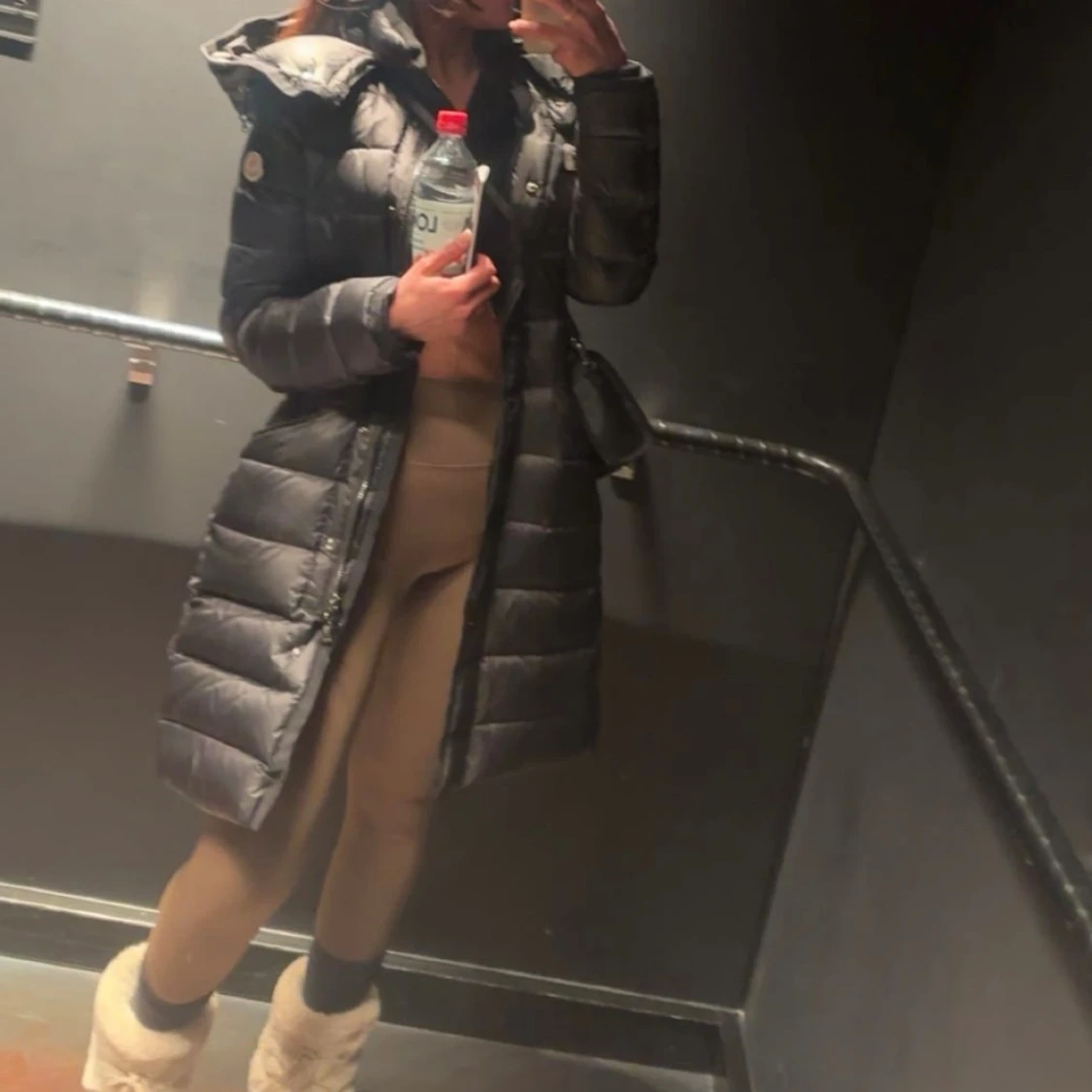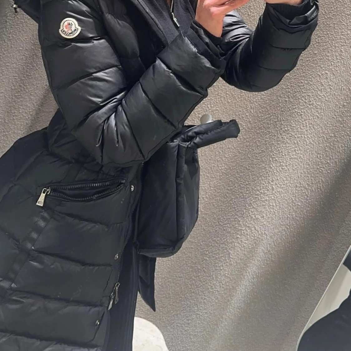 Jätte snygg& unik moncler jacka som jag fick i födelsedagspresent. Storlek S går att justera midjan och många fickor & väldigt varm till vintern. Använd 1 vinter bra skick