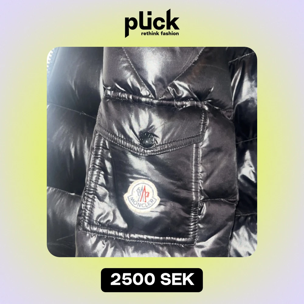 Snygg svart pufferjacka från Moncler med glansig finish. Jackan har en dragkedja framtill och en praktisk ficka med knappdetalj. Perfekt för kyliga dagar med stil. Hör av dig för fler bilder!