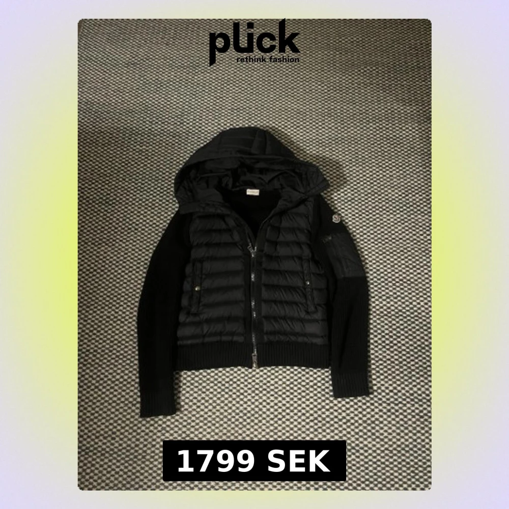 Svart moncler cardigan, jag säljer denna jackan eftersom den har blivit för liten för mig. Den har en liten skada som jag sytt ihop men skadan blir inte värre. Kan droppa i pris vid snabb köp