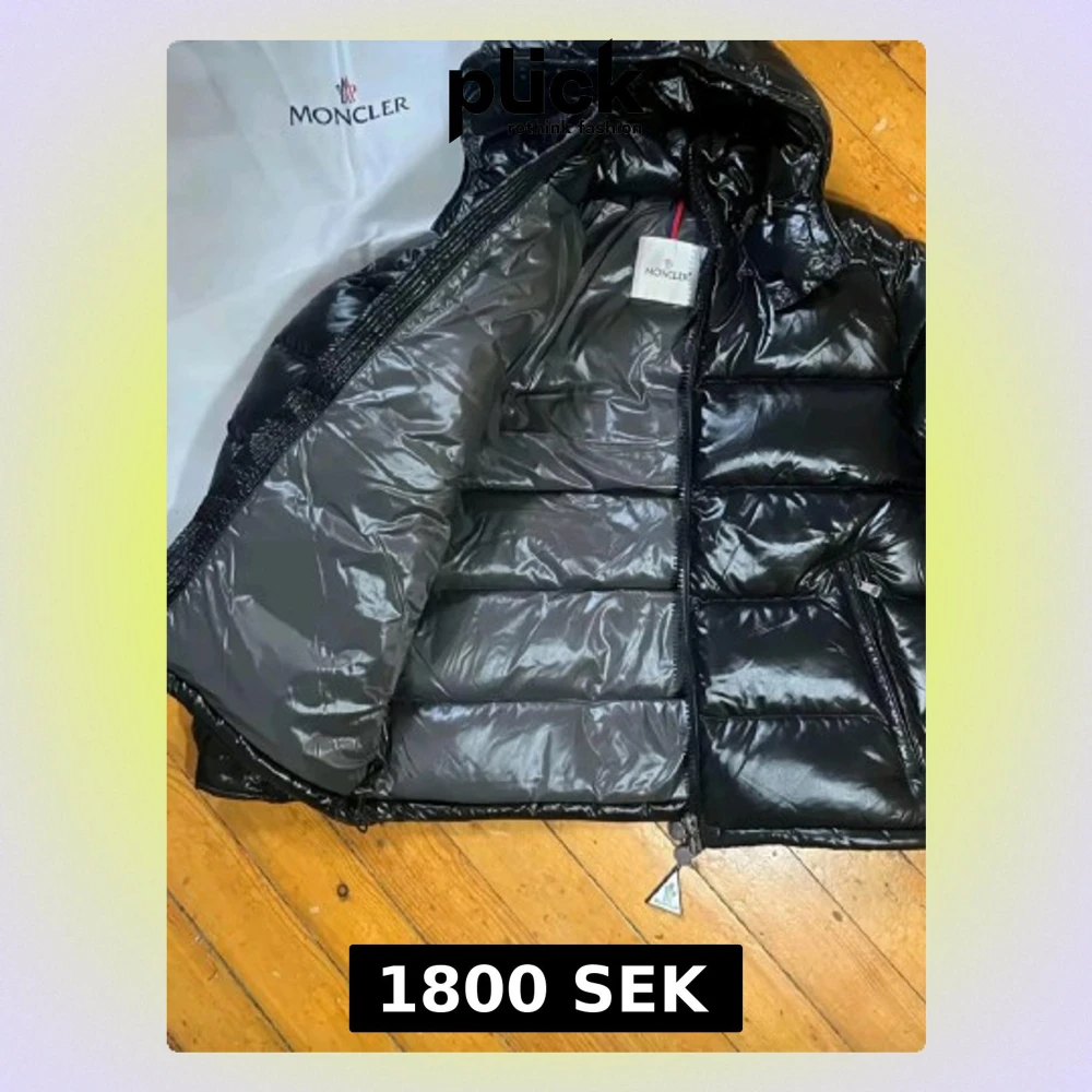 Snygg svart pufferjacka från Moncler med glansig finish och huva. Jackan har dragkedja framtill, två fickor med dragkedja och klassisk Moncler-logga på ärmen. Perfekt för kalla dagar och ger en riktigt clean look.