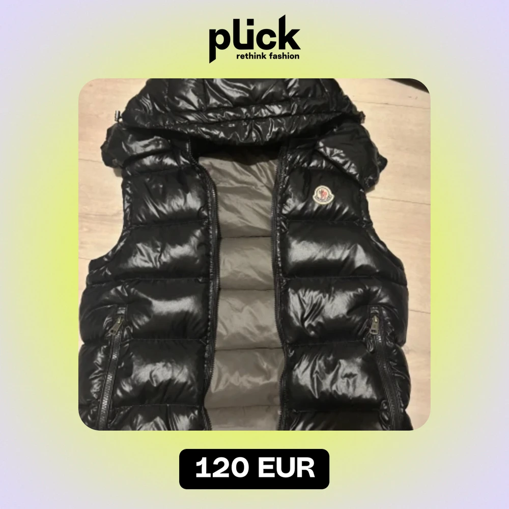 Säljer en snygg och glansig svart dunväst från Moncler. Västen har en quiltad design med dragkedja framtill och två praktiska fickor med dragkedjor. Perfekt för kyliga dagar när du vill hålla stilen. Moncler-loggan är broderad på bröstet. Passar både till vardags och lite finare tillfällen.