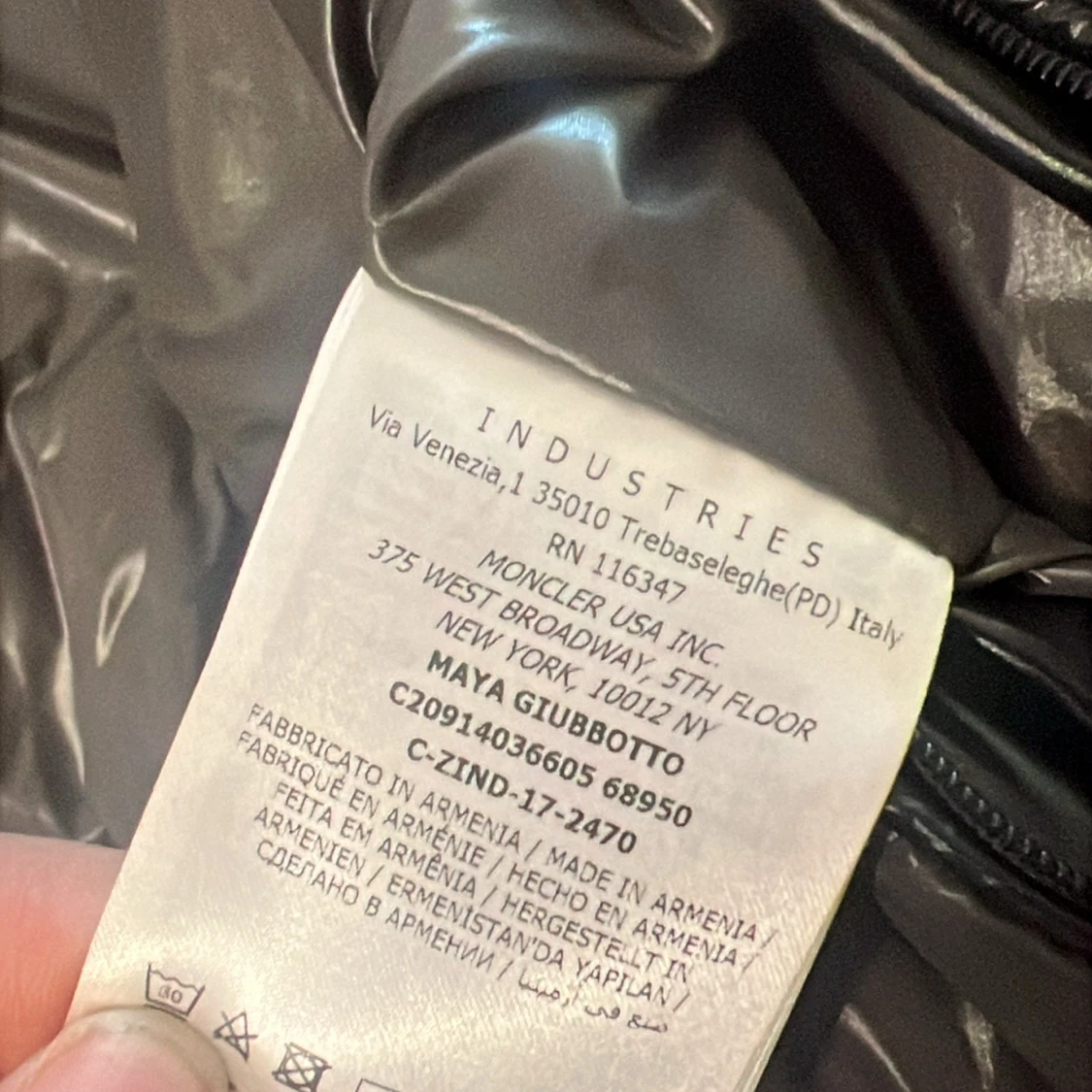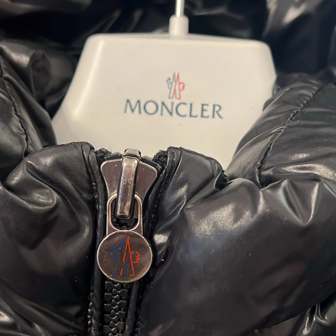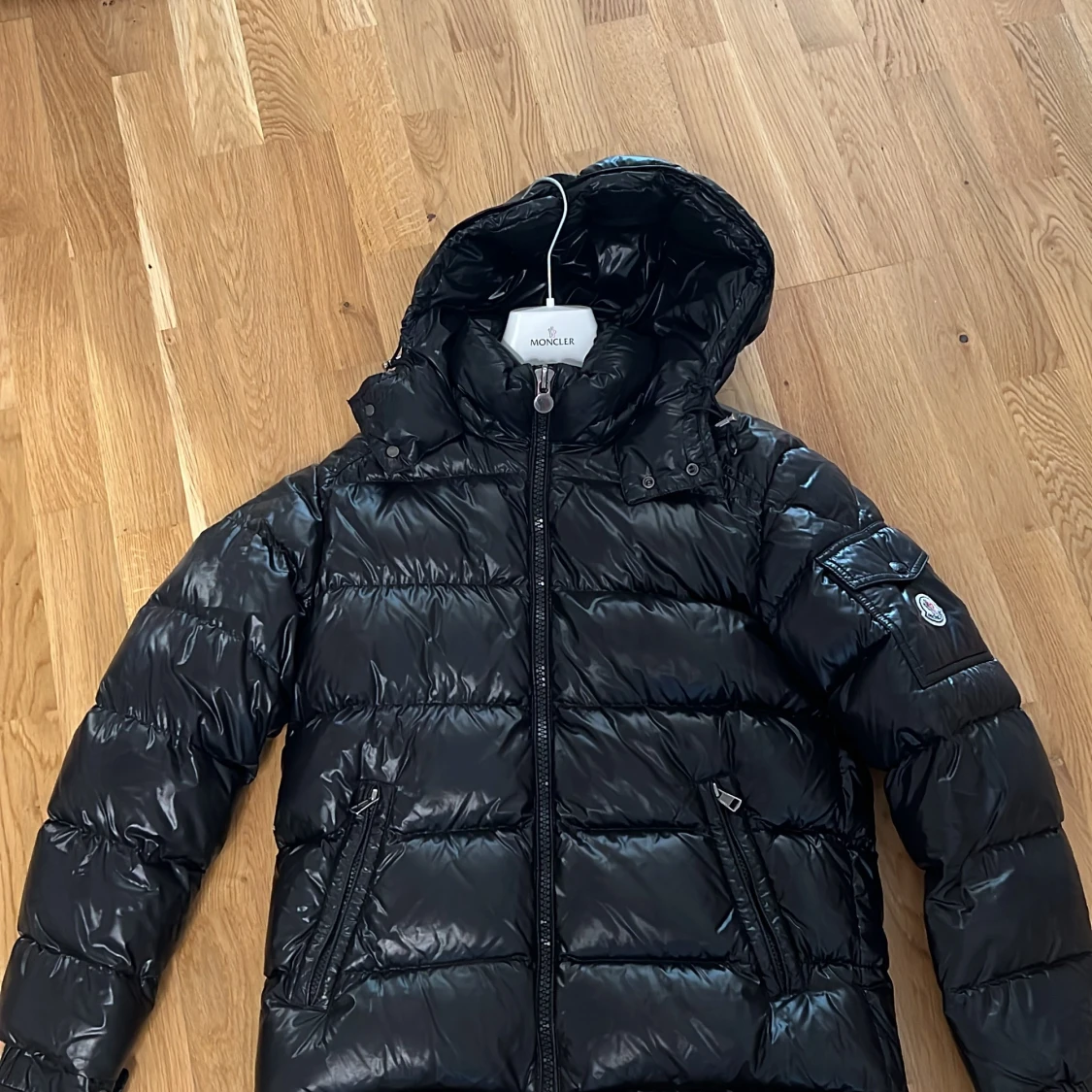 Säljer en svart pufferjacka från Moncler, modell Maya Giubbotto. Jackan har glansig finish, huva, dragkedja framtill och två snedställda fickor med dragkedja. Klassisk Moncler-logga på ärmen och quiltad design som håller dig varm under kalla dagar.