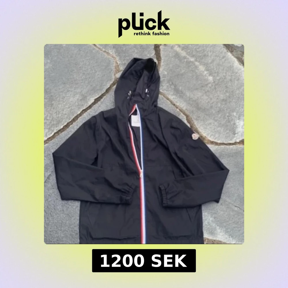 Svart vindjacka från Moncler med huva och dragkedja i rött, vitt och blått. Jackan har lång ärm, Moncler-logga på ärmen och är tillverkad i lätt polyester. Perfekt för dig som vill ha en stilren och sportig look. NFC-tag finns.