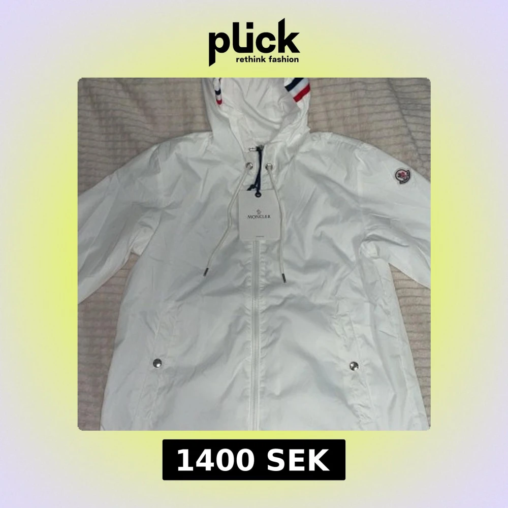 Moncler vind jacka, i färgen vit. Helt ny och top kvalité. Jackan är med luva och två fickor, perfekt för vind väder/höst väder.