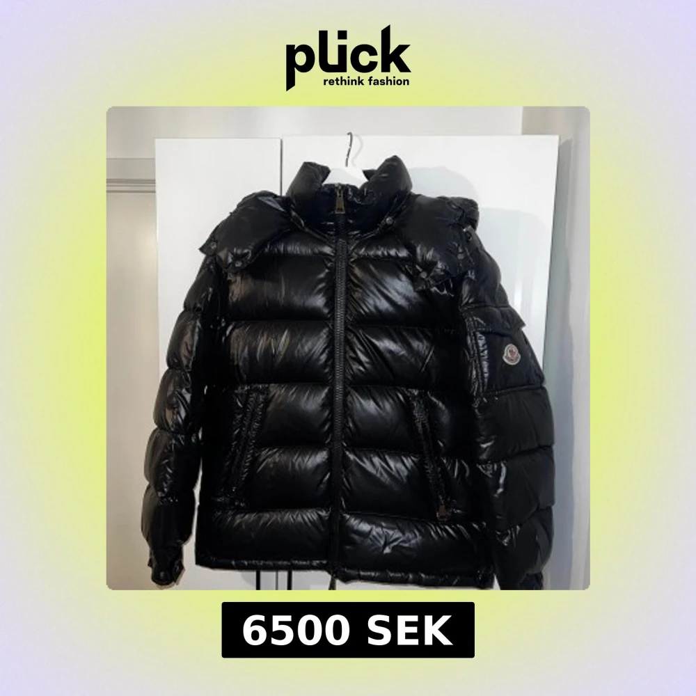 Säljer en svart pufferjacka från Moncler med glansig finish, hög krage och huva. Jackan har dragkedja framtill, fickor med dragkedja och en Moncler-logga på ärmen. Modellen är MAIRE, storlek 1 vilket motsvarar en EU S. Kvitto finns även tillgängligt. Finns en liten skrapa på insidan av jackan, bara nån millimeter som knappt syns.