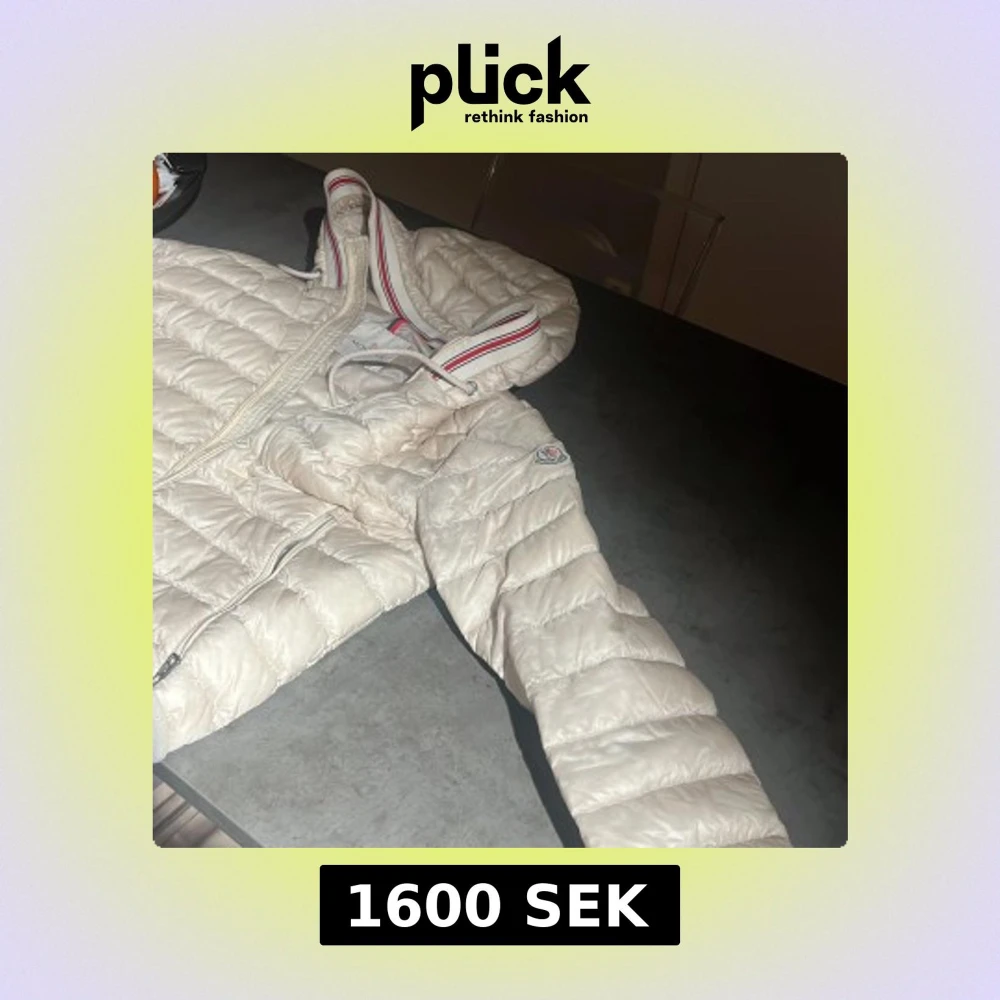 Säljer en snygg vit pufferjacka från Moncler med huva och dragkedja. Jackan har ett stilrent och quiltat mönster samt Moncler-logga på ärmen. Perfekt för kyliga dagar!
