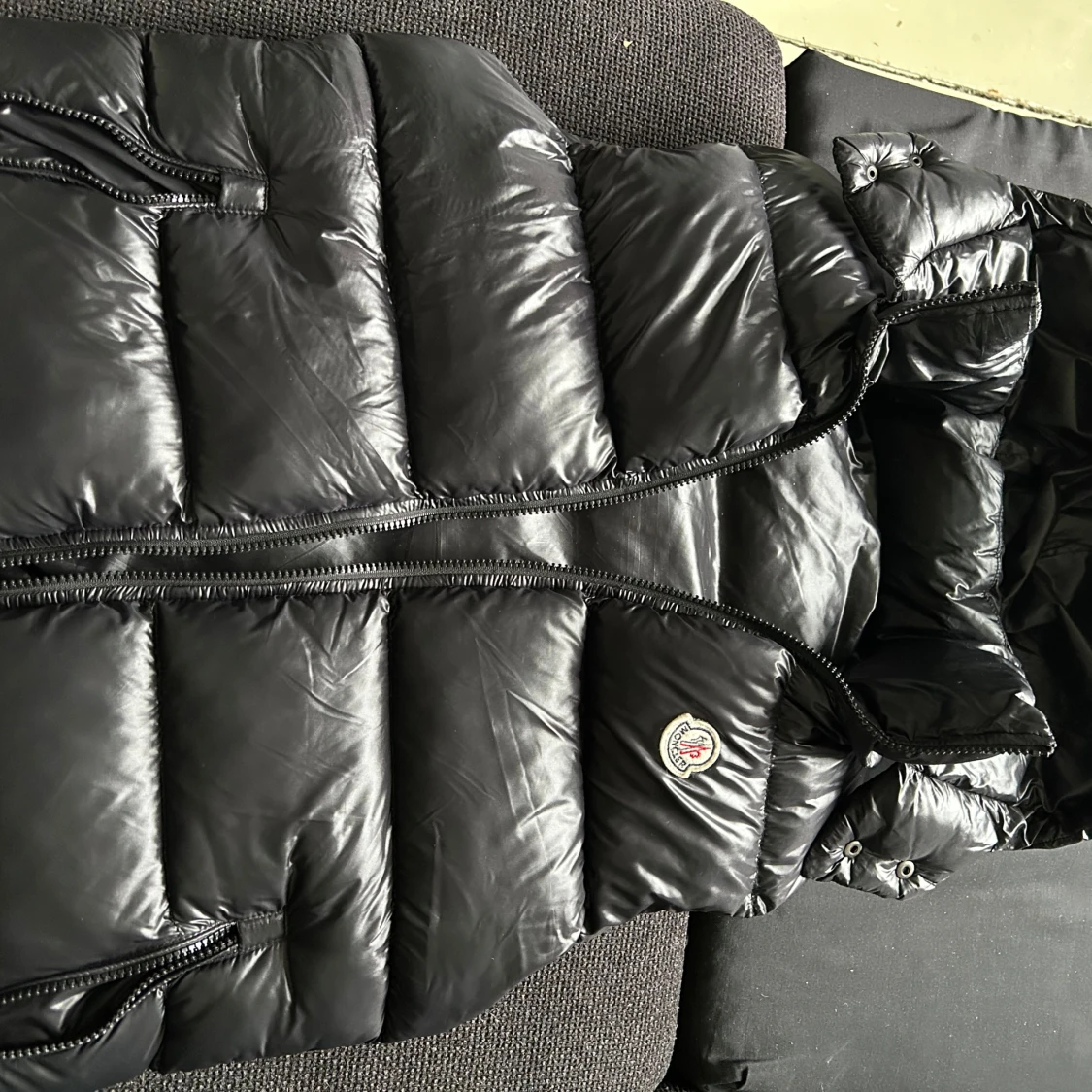 Säljer en svart dunväst från Moncler med klassisk logotyp på bröstet. Västen har dragkedja framtill och stora vadderade paneler som ger en puffig look. Perfekt för lager-på-lager-stil under kyliga dagar.