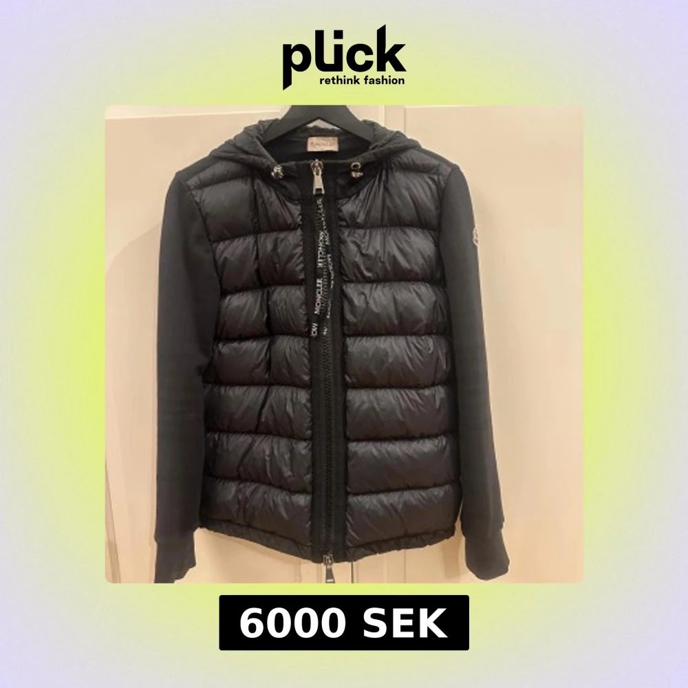 Svart cardigan från Moncler med huva och långa ärmar. Jackan har quiltad framsida i glansig polyester och släta ärmar med Moncler-logga på vänster arm. Passar någon som är 165/175 , jag säljer den för att den är för stor för mig och jag är 150 cm. Kom med prisförslag. Endast intresse koll . Storlek 1/S