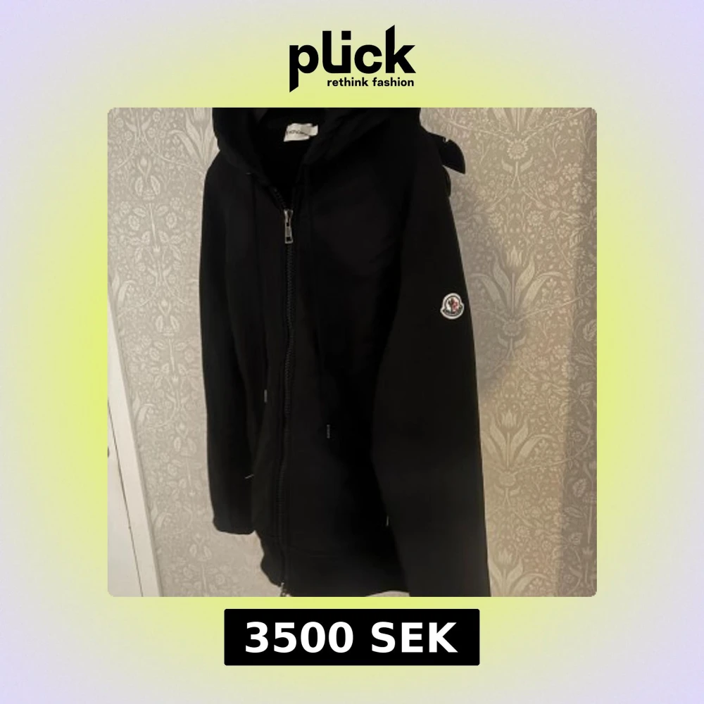 Svart cardigan från Moncler med dragkedja framtill, huva och klassisk logga på ärmen. Passar bra på mig och är runt 176, de finns en kod som bevisar att den är äkta, skickar den bilden när intresse finns!