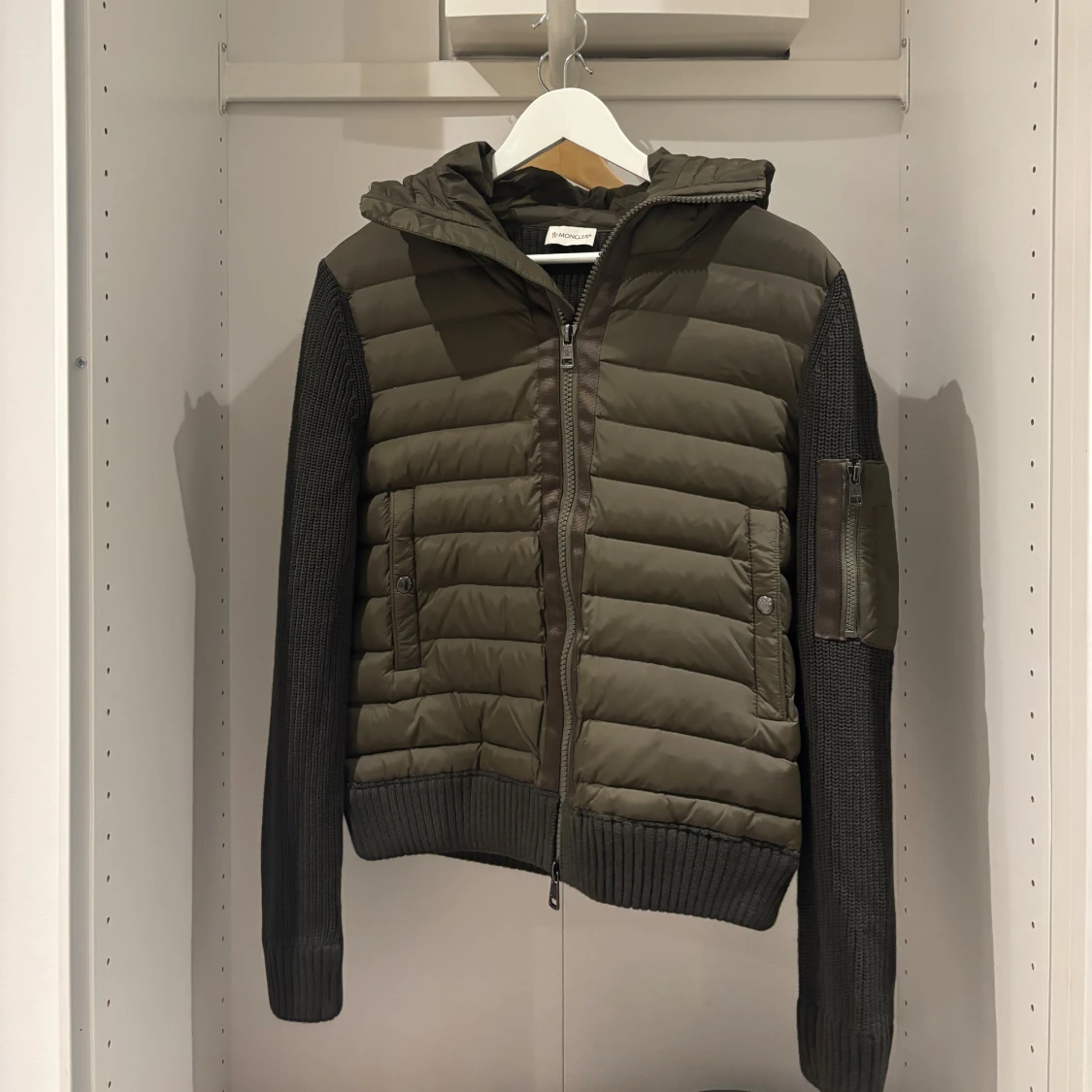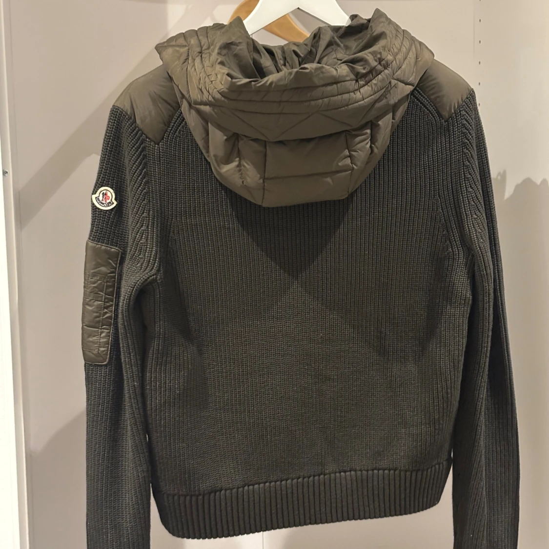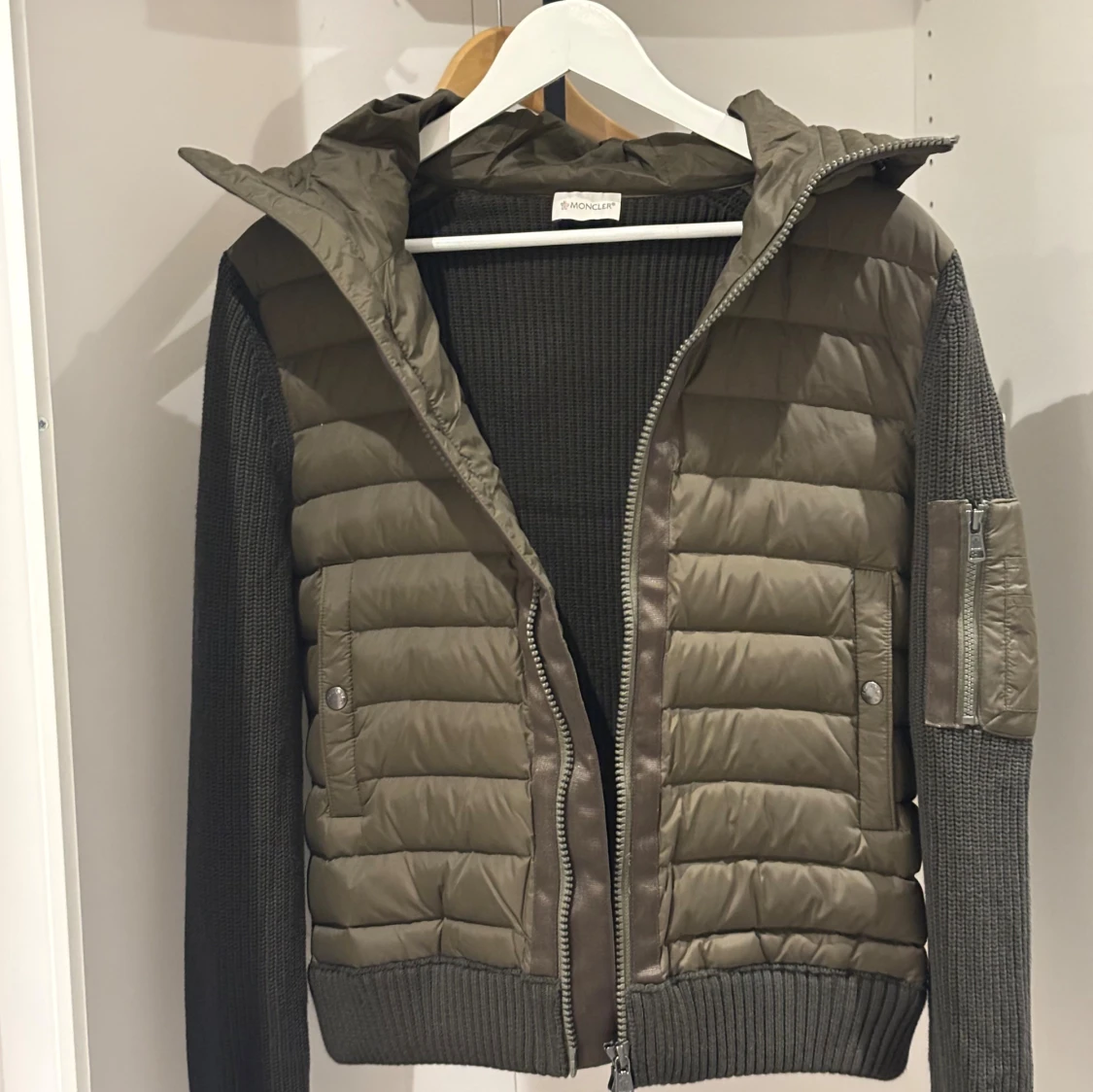 Riktigt fet cardigan från moncler i oliv grön, har endast provat den ett par gånger innomhus. Den är i storlek S, och passar fint om du är 165-178. Inget kvitto tyvärr. Passa på köpa nu, priset är inte hugget i sten så skicka ett bud. först till kvarn!!!🤩