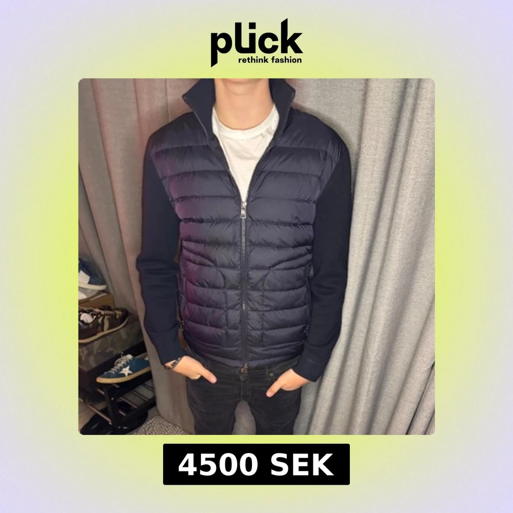 Tja! Säljer en skitfeta mörkblå cardigan från Moncler med quiltad framsida och dragkedja. Jackan har långa ärmar och en hög krage. Perfekt för kyligare dagar. Otroligt fint skick, ingen defekt eller liknande förutom att tagen i nacken har släppt på ena sidan. Givetvis äkta! Vid funderingar är det endast att höra av sig!
