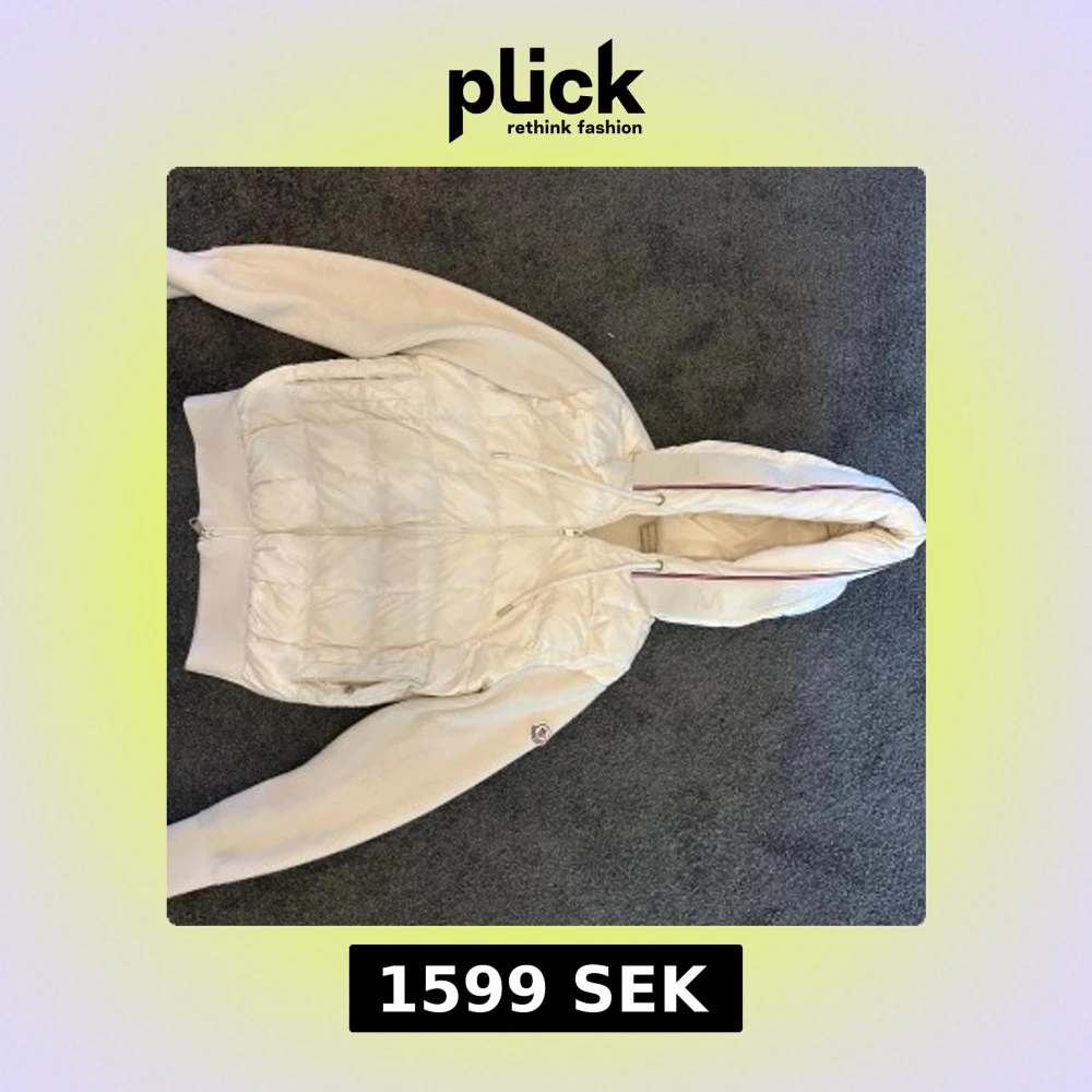 Säljer en snygg vit Cardigan från Moncler med huva och ribbstickade ärmar. Jackan har quiltad front, dragkedja och diskret Moncler-logga på ärmen. Perfekt för dig som vill ha en clean och exklusiv look med street-vibe. (Priset kan diskuteras)