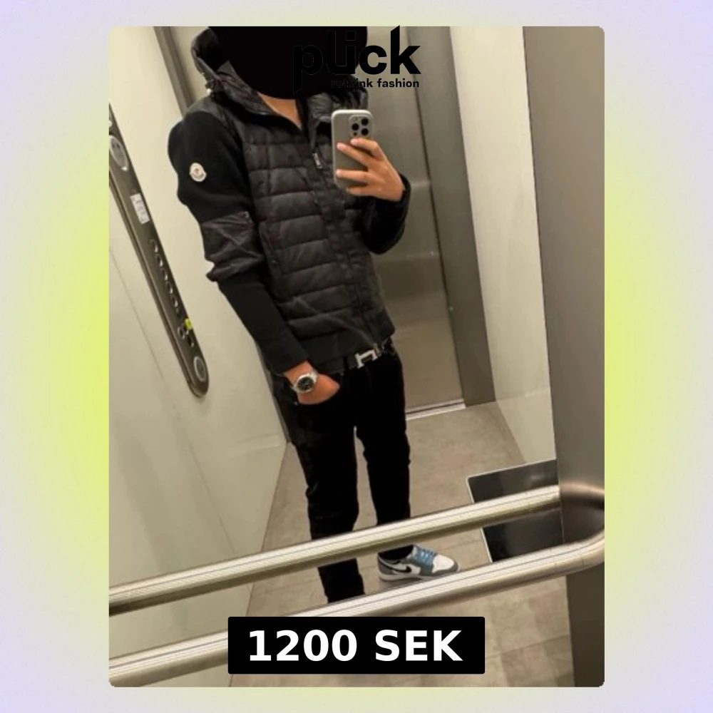 Säljer en svart pufferjacka från Moncler med huva och dragkedja framtill. Jackan har quiltad front och släta ärmar med Moncler-logga på vänster arm. Perfekt för dig som gillar stilren och sportig look.