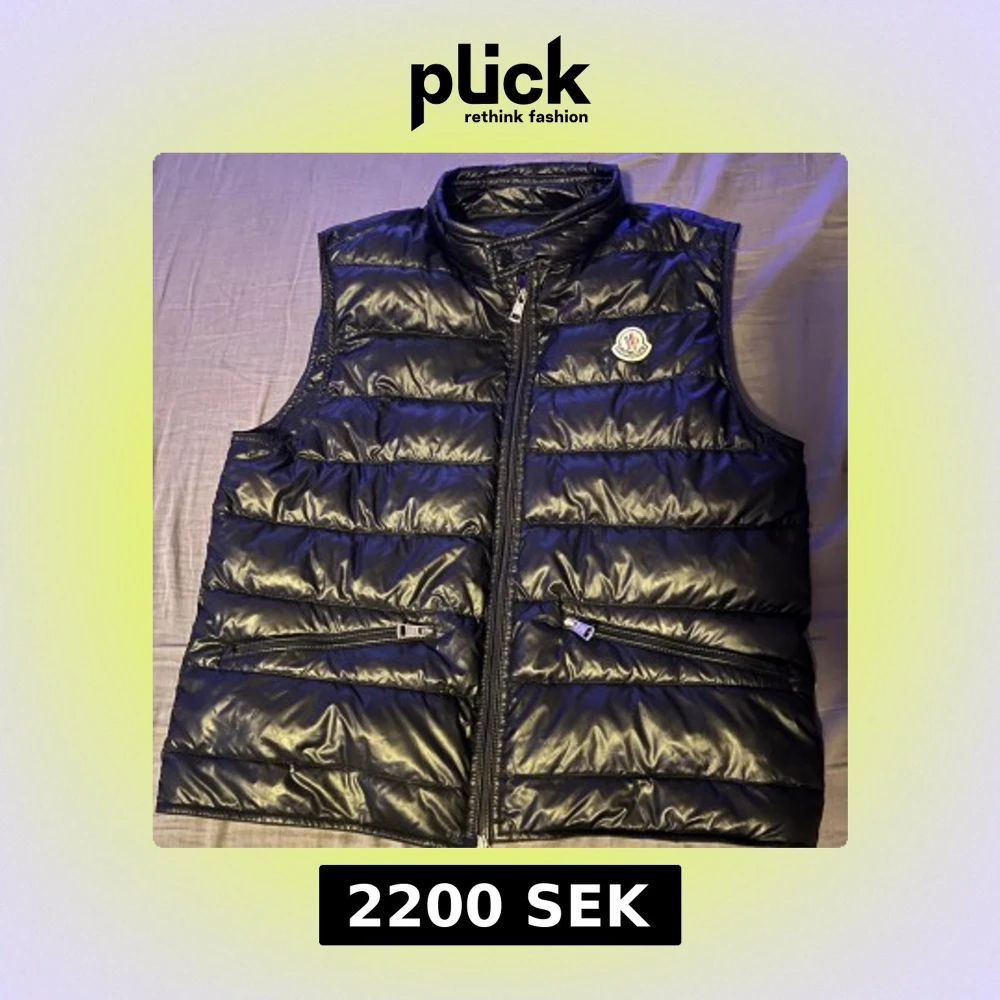 Snygg svart dunväst från Moncler med dragkedja och två fickor framtill. Västen har en quiltad design och Moncler-logga på bröstet. Perfekt för kyligare dagar.