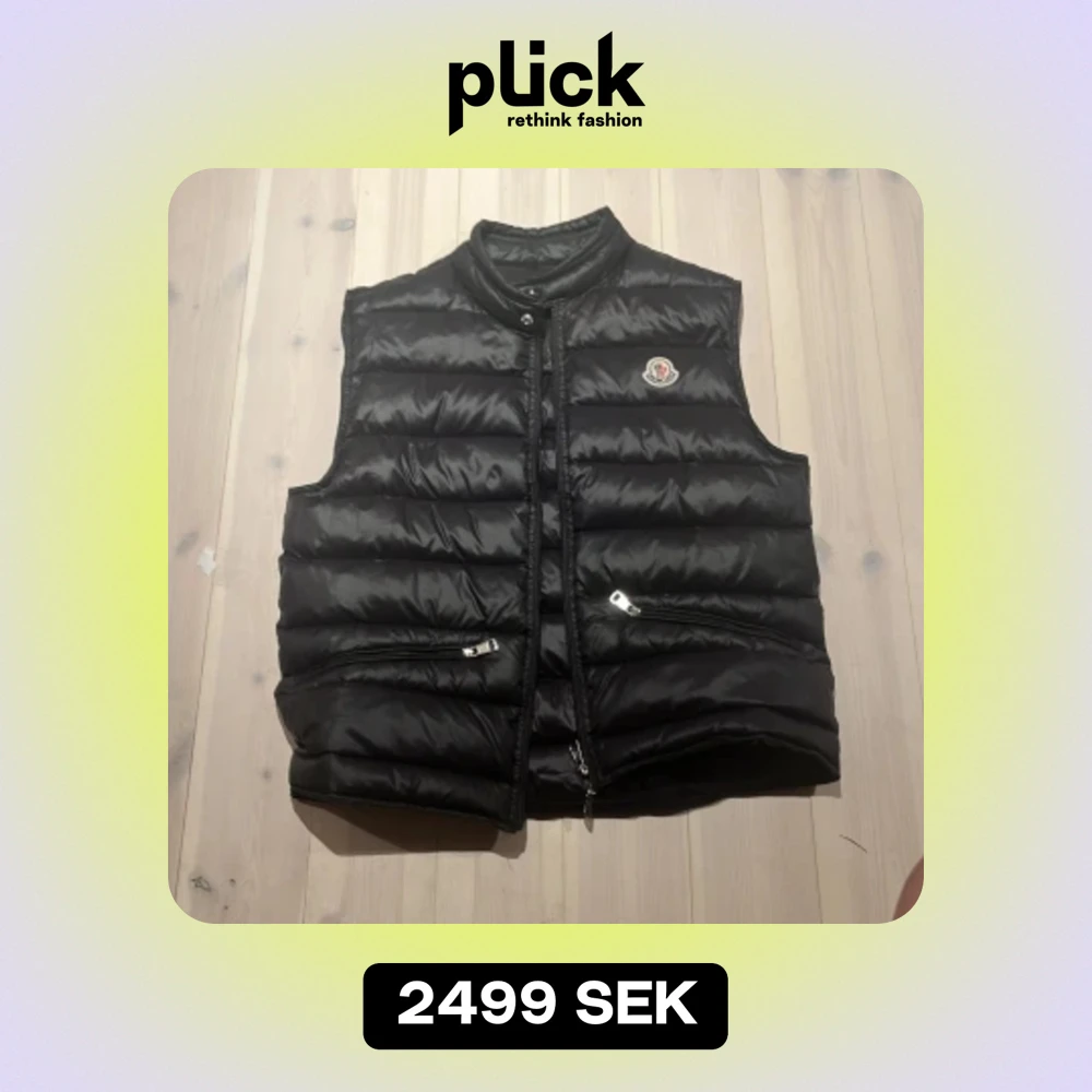 Tja! Säljer en riktigt fet Moncler väst i storlek 1 i Moncler väst så S i vuxen. Den är köpt på Moncler för ett år sedan och är ganska bra skick bara att det är ett lite hål som är fixat med ett annat tyg som du ser i 4 bilden. Skriv om ni undrar nåt