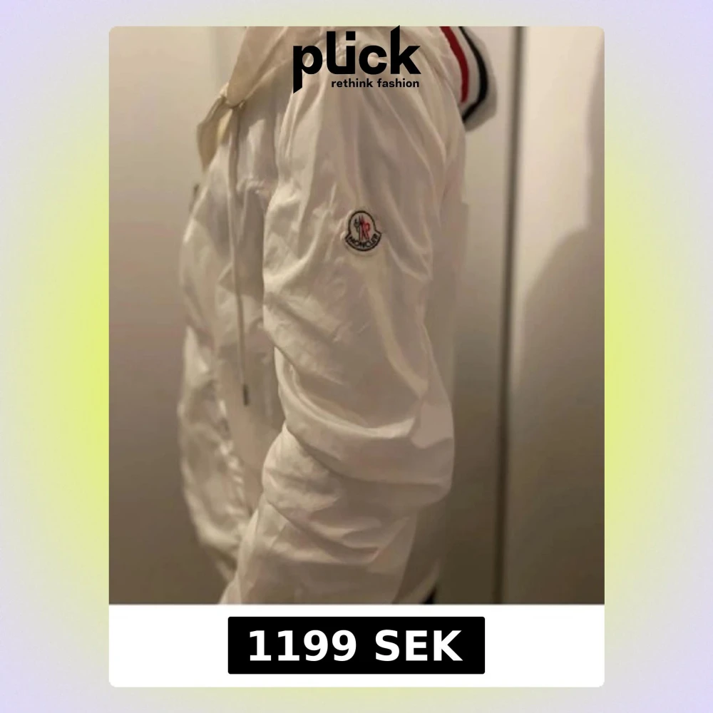 Snygg vit vindjacka från Moncler med huva och dragkedja framtill. Jackan har Moncler-logga på ärmen, snörning vid huvan och praktiska fickor med knappar. Perfekt för dig som vill ha en stilren och sportig look.