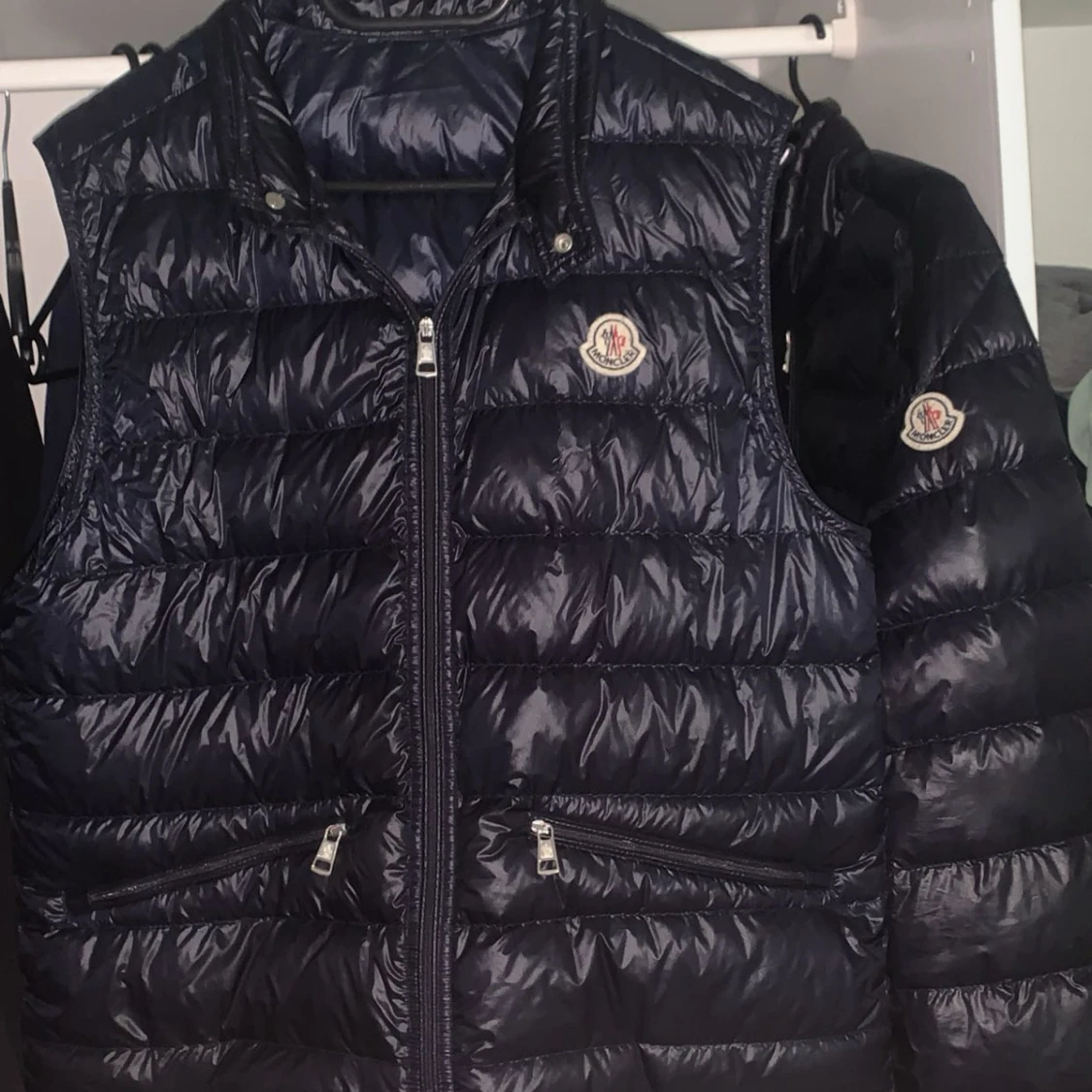 Snygg moncler gui väst i färgen navy blue storlek 2 som motsvarar S/M bra skick hör gärna av er om ni har någon fråga. Har även en moncler acuros jacka som ska säljas skriv om bilder eller frågor om du är intresserad!!