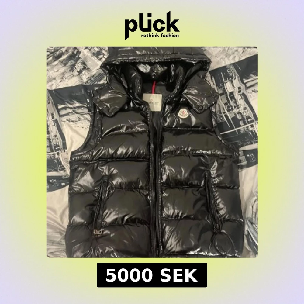 Snygg svart dunväst från Moncler med glansig finish och quiltad design. Västen har huva, två fickor med dragkedja och klassisk Moncler-logga på bröstet. Perfekt för lager-på-lager och streetstyle. Dragkedja framtill och coolt märke på insidan.