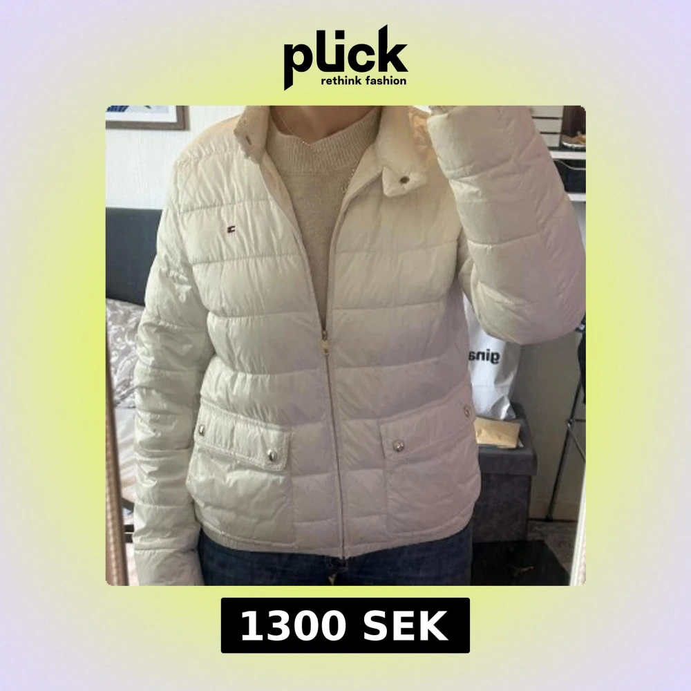 Skitsnygg lätt vadderad jacka från Tommy Hilfiger med dragkedja och tryckknappar. Jackan har två fickor fram med tryckknappar. Den har missfärgning i nacken, vet ej om det är något som går bort. Men syns inte vid användning. Bortsätt från det nästan nyskick!