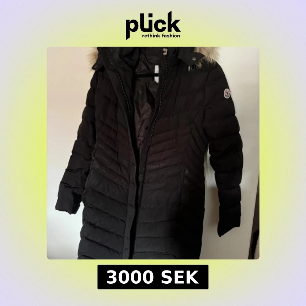 Säljer en svart lång dunjacka från Moncler med huva och snygg pälsdetalj. Jackan har quiltad design, dragkedja framtill och Moncler-logga på ärmen. Perfekt för kalla dagar och riktigt stilren look. Dragkedjan har hängt sig men går enkelt att laga, samt ett hål inne i jackan till ena armen se bild. Jackan är även äkta vill ni ha en video från loggan är det bara att säga till. Storleken är US 2