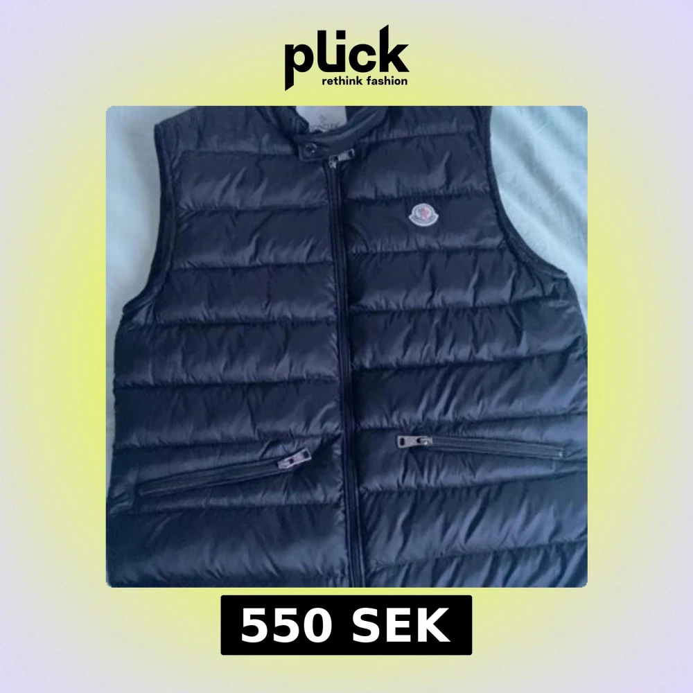 Snygg svart dunväst från Moncler med quiltad design och dragkedja framtill. Västen har två fickor med dragkedja och klassisk Moncler-logga på bröstet. Perfekt för lager-på-lager och ger en clean, sportig look.