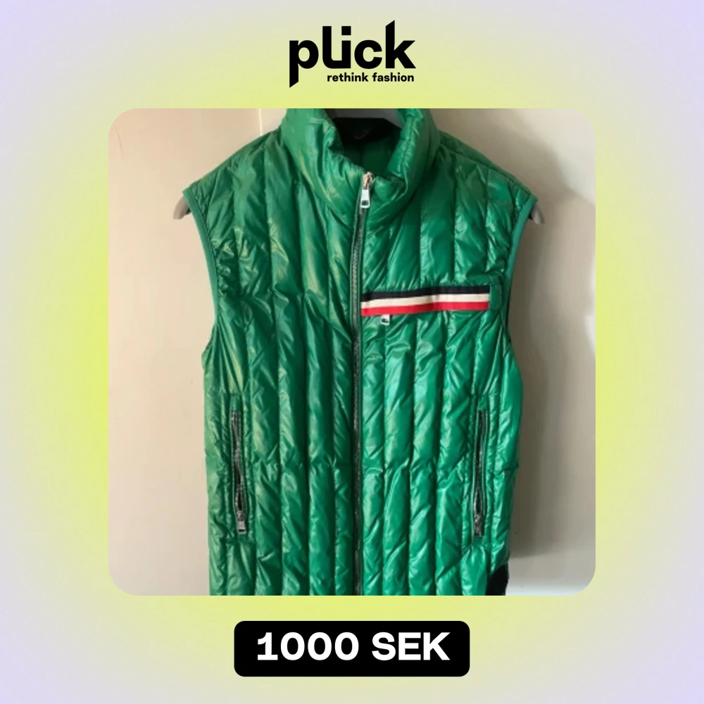 Grön väst från Moncler, storlek 2 och motsvarar medium men något liten i storlek