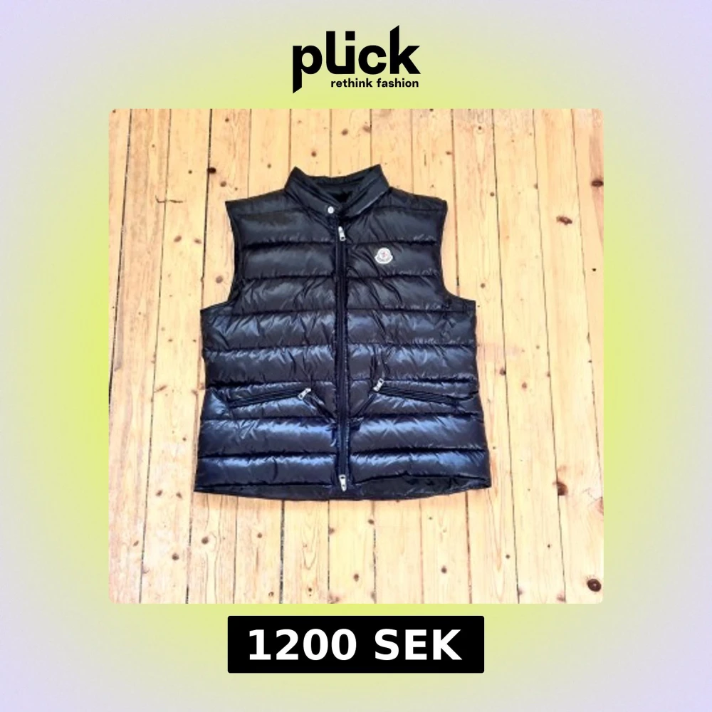 Snygg svart dunväst från Moncler med glansig finish och klassisk logga på bröstet. Västen har hög krage, två dragkedjefickor och stängs med dragkedja framtill. Perfekt lager-på-lager-plagg för kyliga dagar. Storlek 4