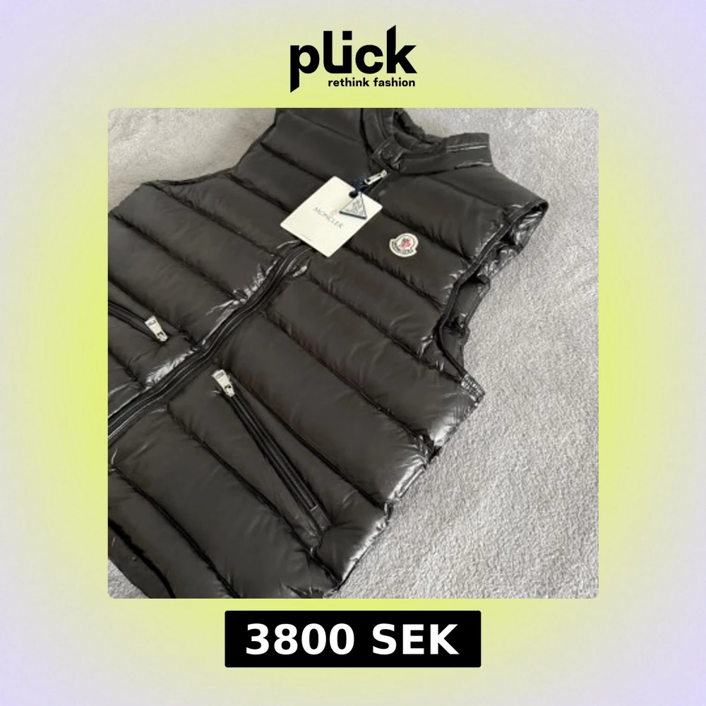 Svart, glansig dunväst från Moncler med quiltad design och ståkrage. Västen har två snedställda dragkedjefickor framtill, Moncler-logga på bröstet och en diskret logolapp på insidan. Perfekt för lager-på-lager och snygg till streetwear.