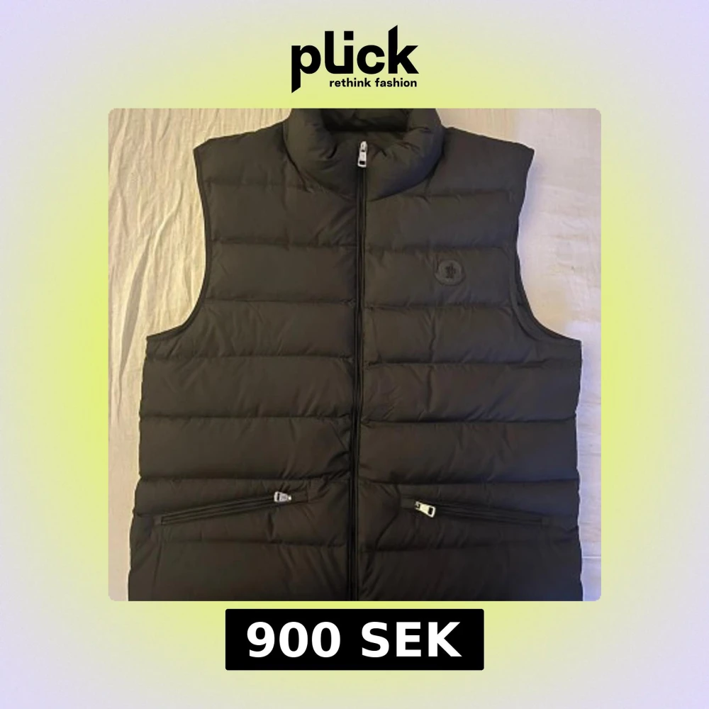 Moncler väst i storlek L, använd fåtalgånger men har en liten slitning på ryggen, mitt pris 900kr