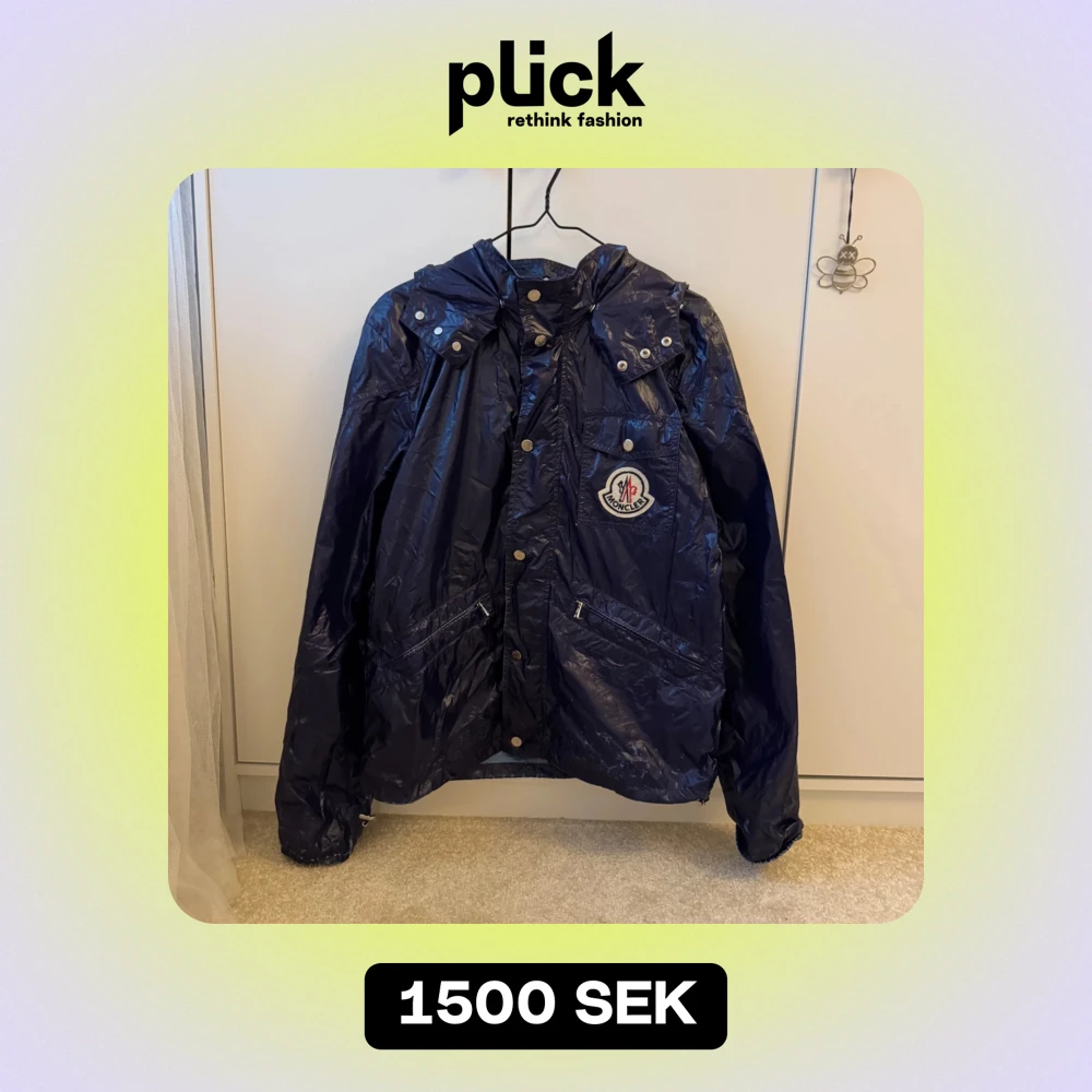 Jacka från moncler, mörklila/blå i färgen. I ett tunt fint material som liknar vind-/regnjacka💜 Vintage och har därav ej qr-kod, köpt på Vestiaire och såklart äkta! Storlek 4. Den här små slitningar på nedre delen, se sista bilden