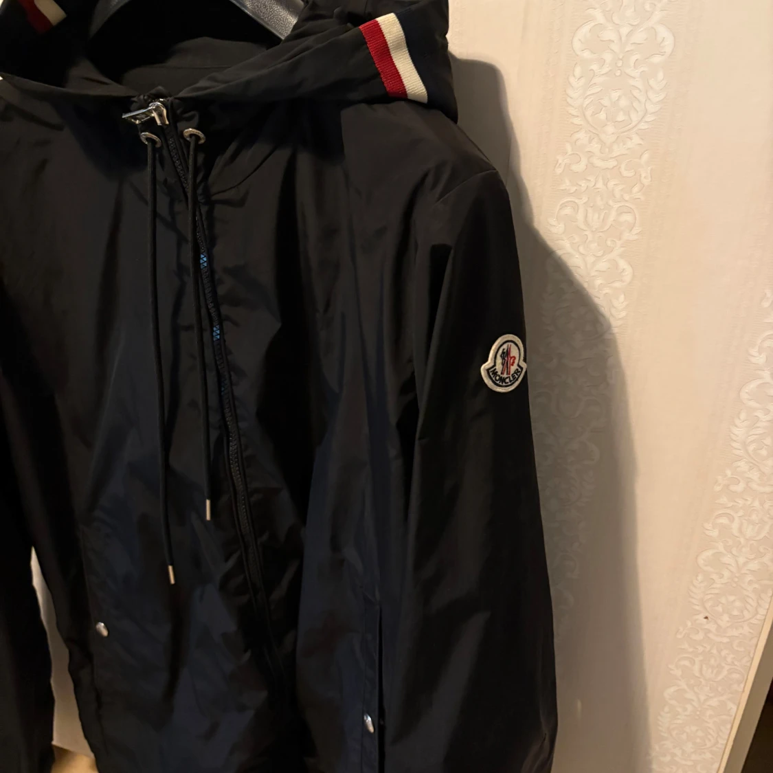 Säljer nu en moncler windbraker då den är stor för mig och jag knappt använder den. Jackan har några hål i sig där nere då jag ramlade när jag körde fotboll.