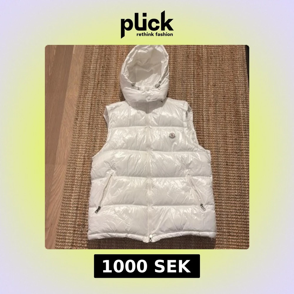 Säljer en snygg vit dunväst från Moncler med avtagbar huva och två dragkedjefickor. Västen har en klassisk Moncler-logga på bröstet och stängs med dragkedja framtill. Perfekt för lager-på-lager och stilren look.