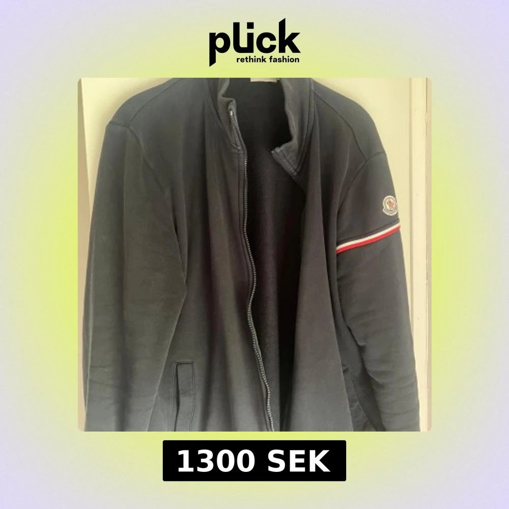 Marinblå jacka från Moncler med hög krage och hel dragkedja framtill. Klassisk Moncler-logga på ärmen och en rödvit randdetalj. Jackan har två fickor och är tillverkad i mjukt bomullsmaterial. Perfekt för dig som gillar stilren och sportig look. Använd men är i ett mycket bra skick! Pris tänker jag runt 1200-1300 men kan förhandlas! Storleken är XL men är som en L.