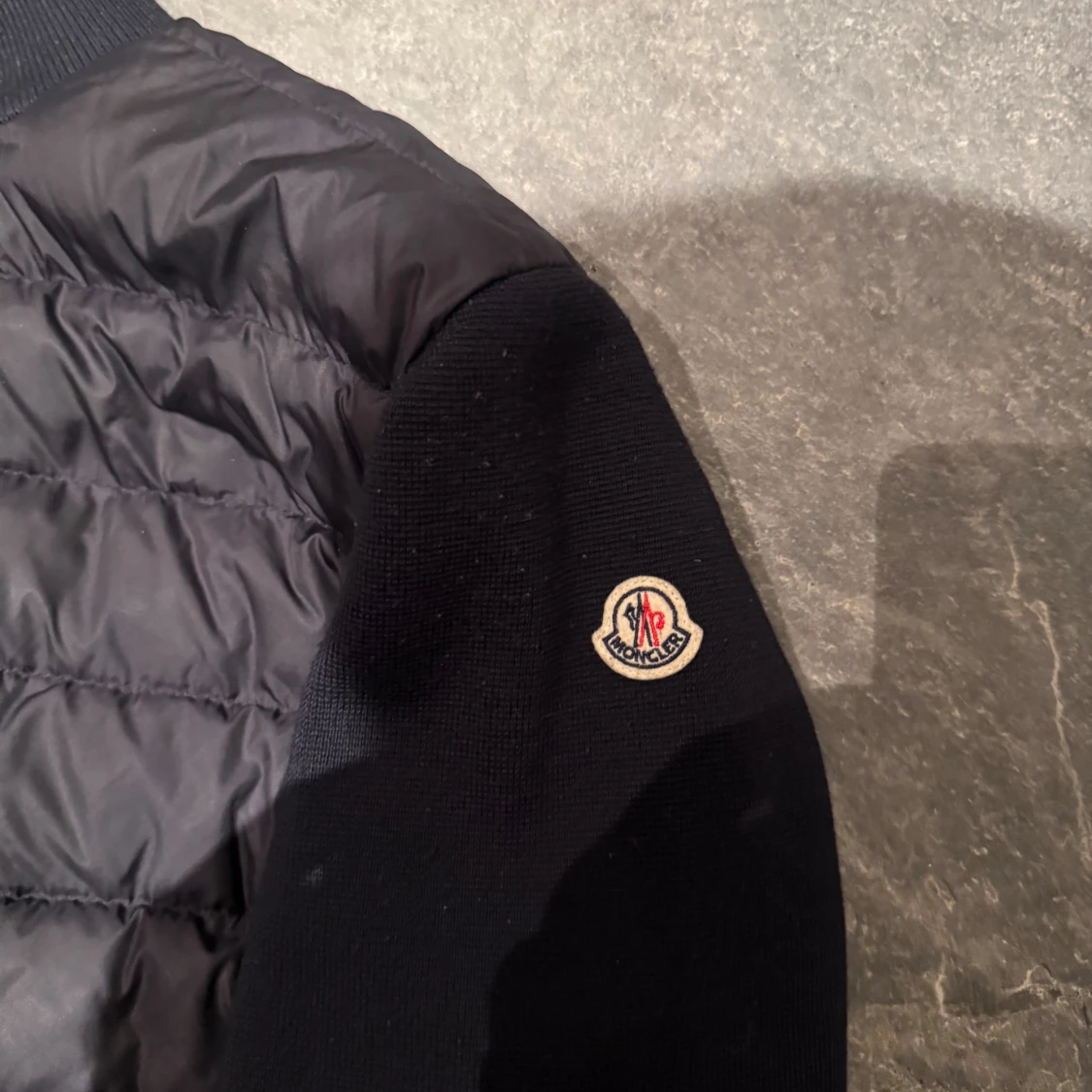 Moncler cardigen, navy. Jag säljer nu min jacka som jag köpte på nk i Göteborg för 2 årsen väldigt fin överlag men har lite små hål på ena armen som ni ser på 4 bilden