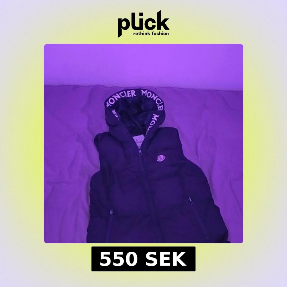 Snygg svart dunväst från Moncler med huva och dragkedja framtill. Huva med Moncler-logga tryckt runt kanten och två fickor med dragkedja. Perfekt för lager-på-lager och streetstyle.