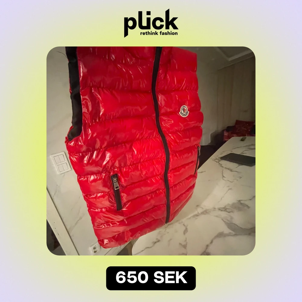 Säljer en snygg röd dunväst från Moncler i mycket bra skick. Västen har en glansig finish med dragkedja och Moncler-logga på bröstet. Anledningen till att jag säljer den är för att den passar inte mig