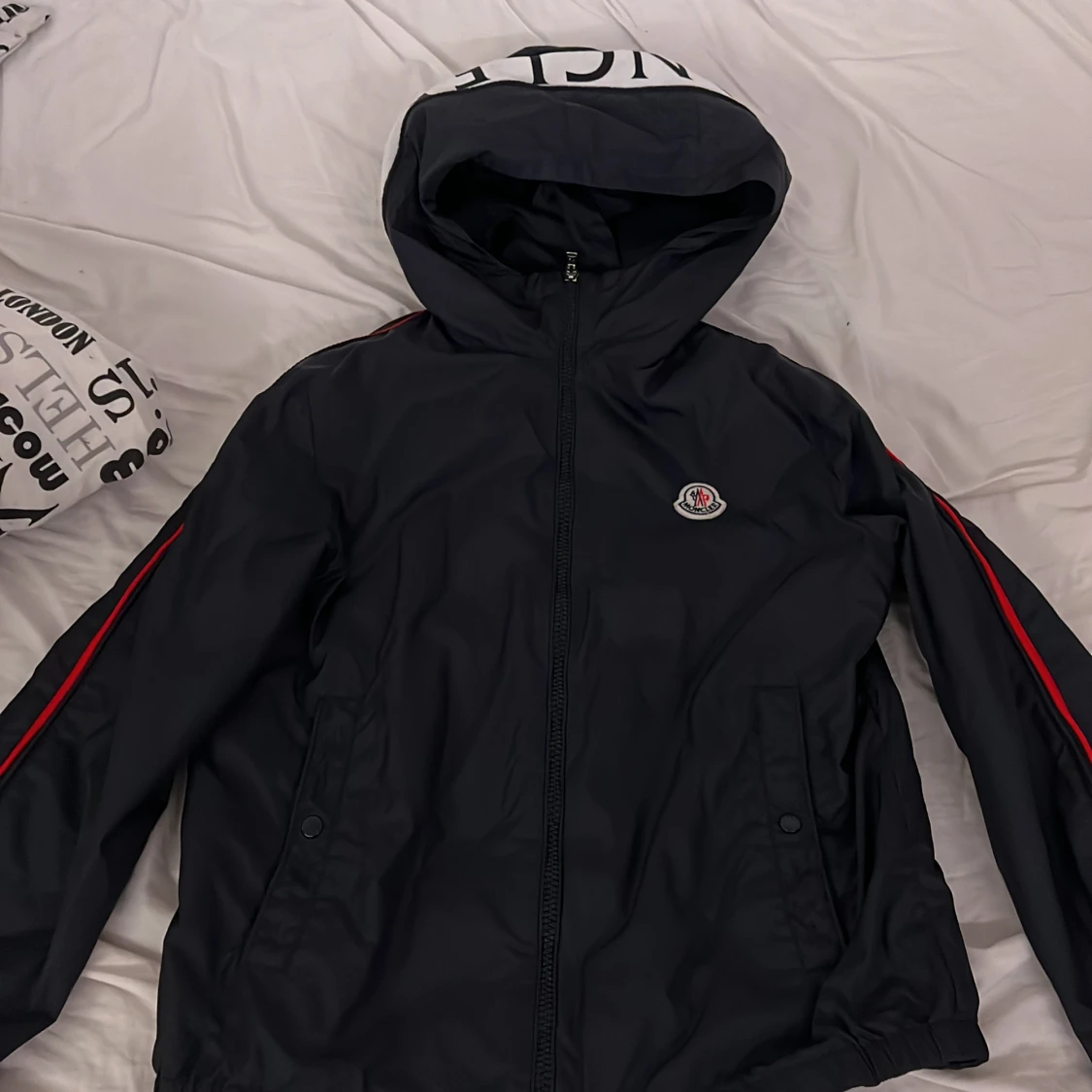 Moncler jacka i bra skick inga hål eller sånt. Äkta. Passar 165-170cm QR kod funkar också