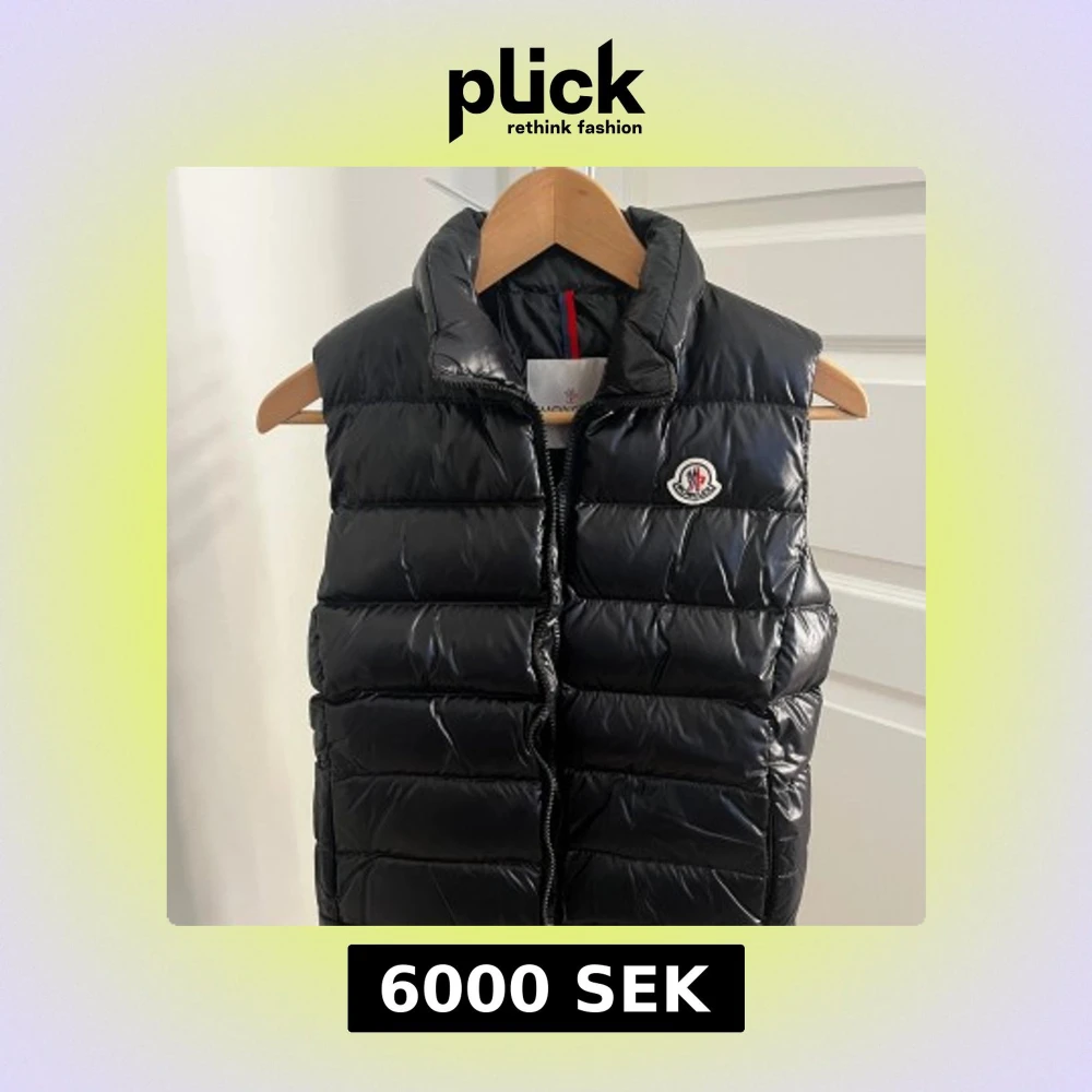 Snygg svart dunväst från Moncler med hög krage och dragkedja framtill. Västen har ett quiltat mönster och Moncler-logga på bröstet. Perfekt för lager-på-lager och håller dig varm under kyliga dagar. Västen är äkta och har alla papper och verifikat kvar.