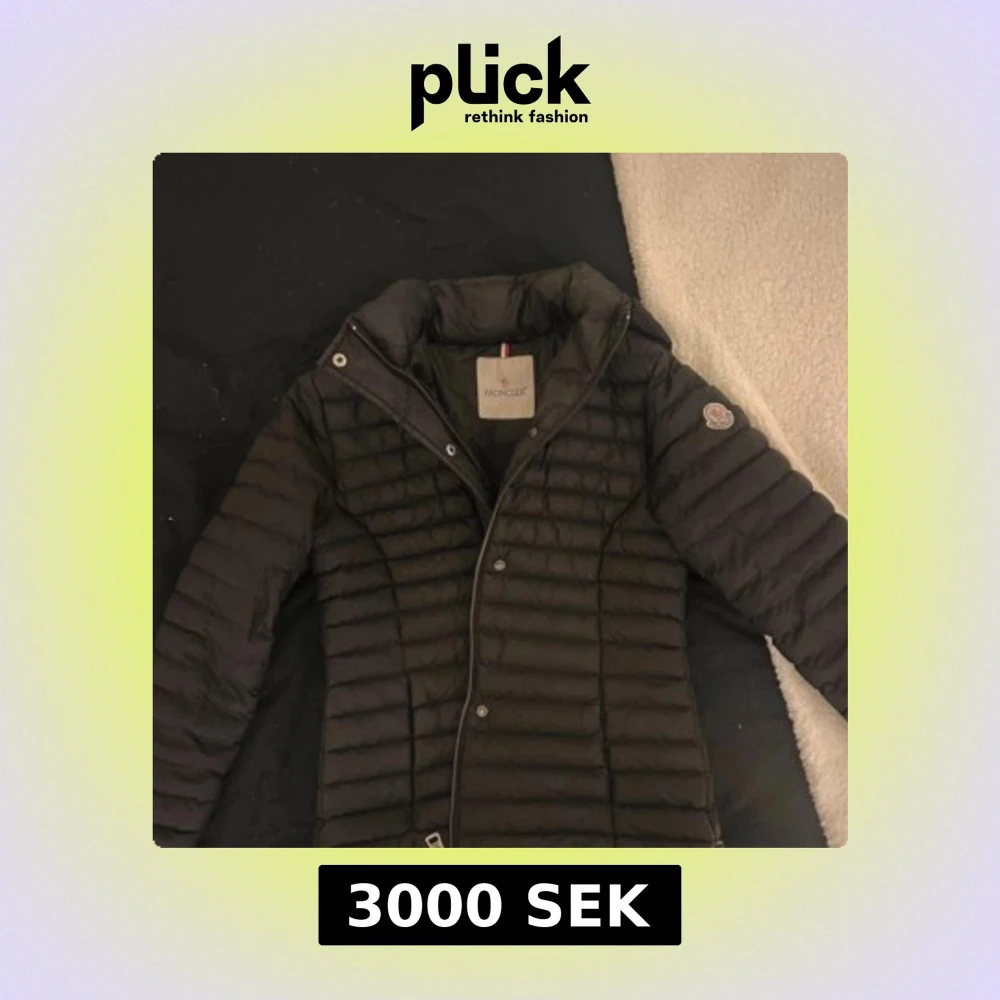 Priset går att förhandla! Säljer en stilren svart dunjacka från Moncler. Jackan har en quiltad design med dragkedja och knappar framtill. Den är långärmad och perfekt för kyligare väder. Moncler-logotypen syns på ärmen och insidan har en unik serietidningsdesign.