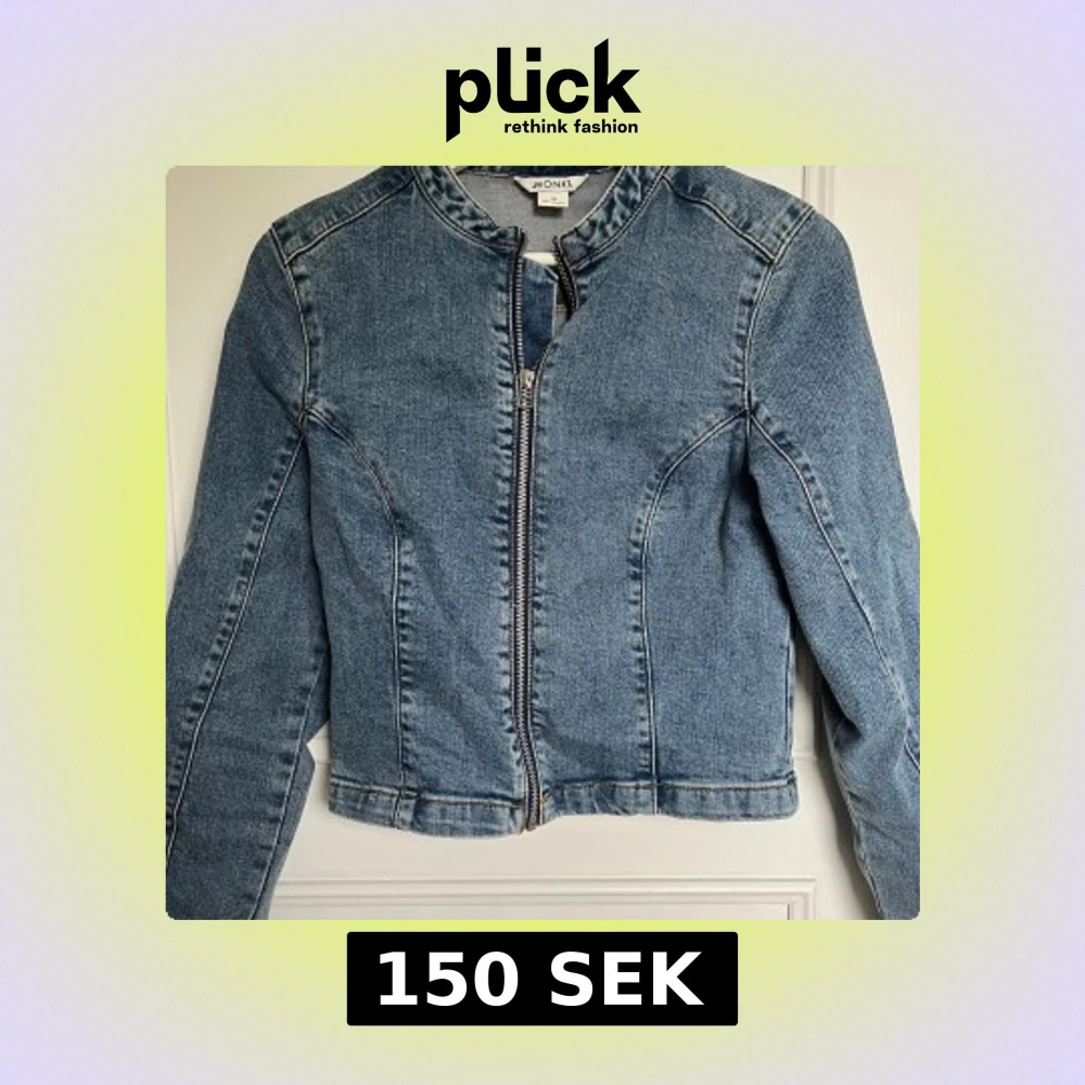 Säljer en ball klassisk blå jeansjacka från Monki med dragkedja framtill. Jackan har rundad halsringning och markerade sömmar för en snygg passform. Perfekt att slänga över en t-shirt eller hoodie.