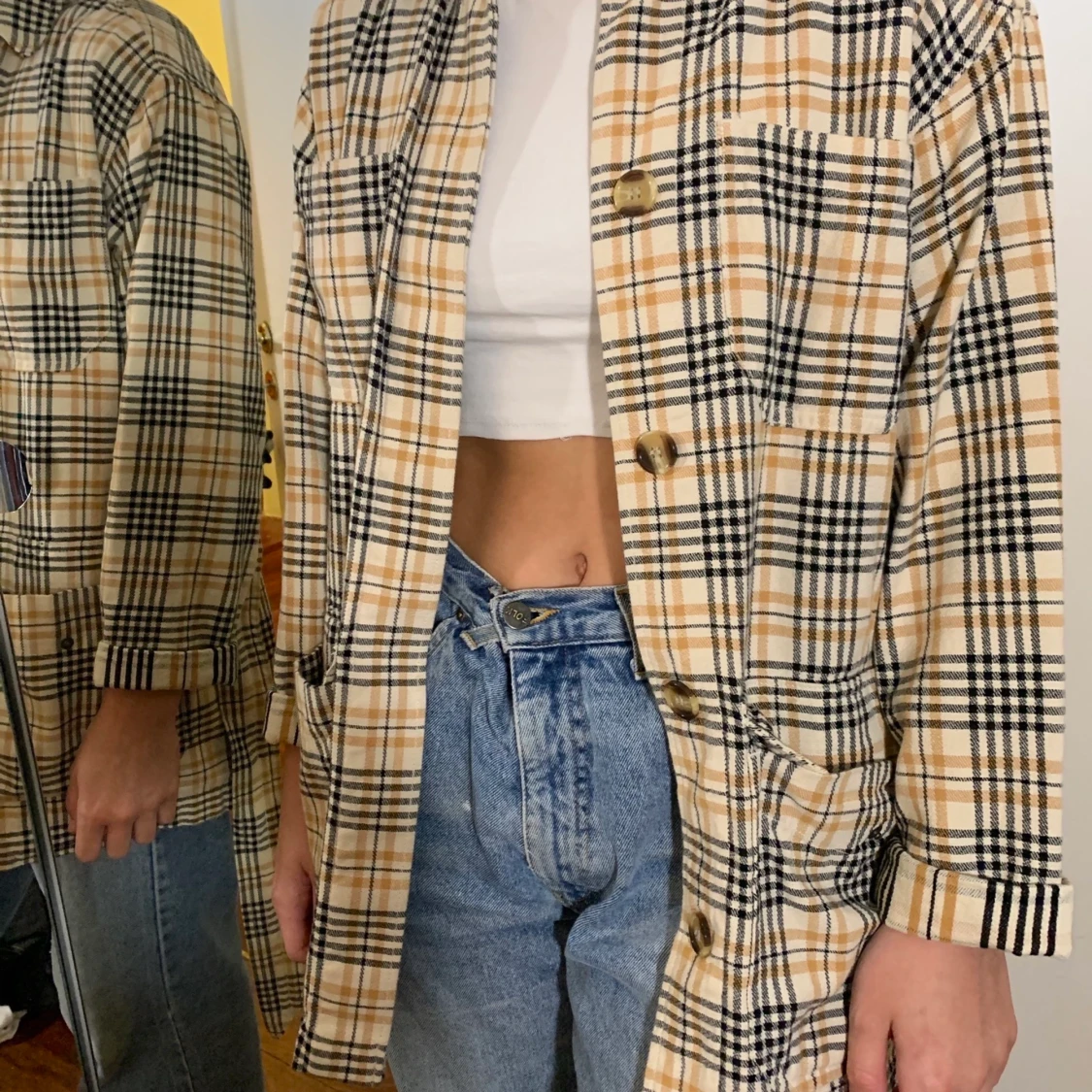 Supersnygg kort kappa från Monki i rutigt mönster💕 Är i Strl XS men passar S-M😊 Använd 1 gång, jättebra skick