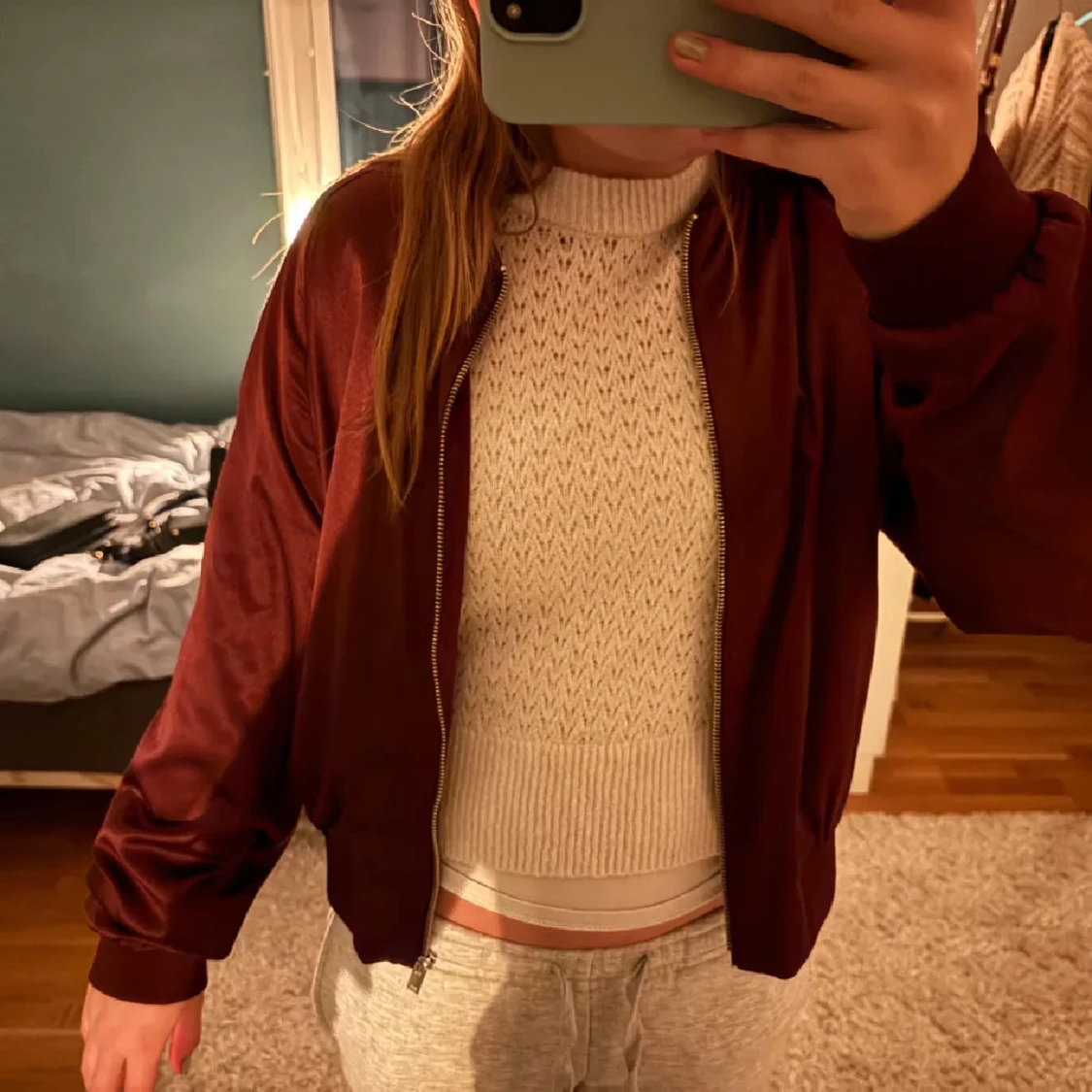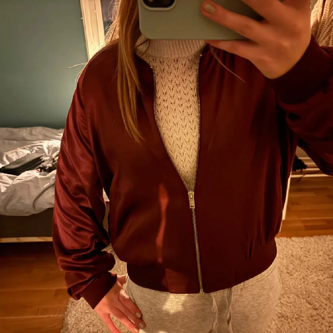 Snygg mörkröd bomberjacka från monki som tyvärr inte kommer till användning. Jackan har ribbade muddar vid ärmslut och midja. Pris kan diskuteras vid snabb affär och postar snabbt!