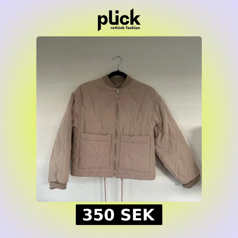 Quiltad beige jacka från Monki i storlek XS. Jackan har stora fickor framtill, dragkedja med rund detalj och ribbade muddar vid hals och ärmslut. Croppad modell med dragsko nertill och snyggt rutmönster över hela jackan.🤩💕