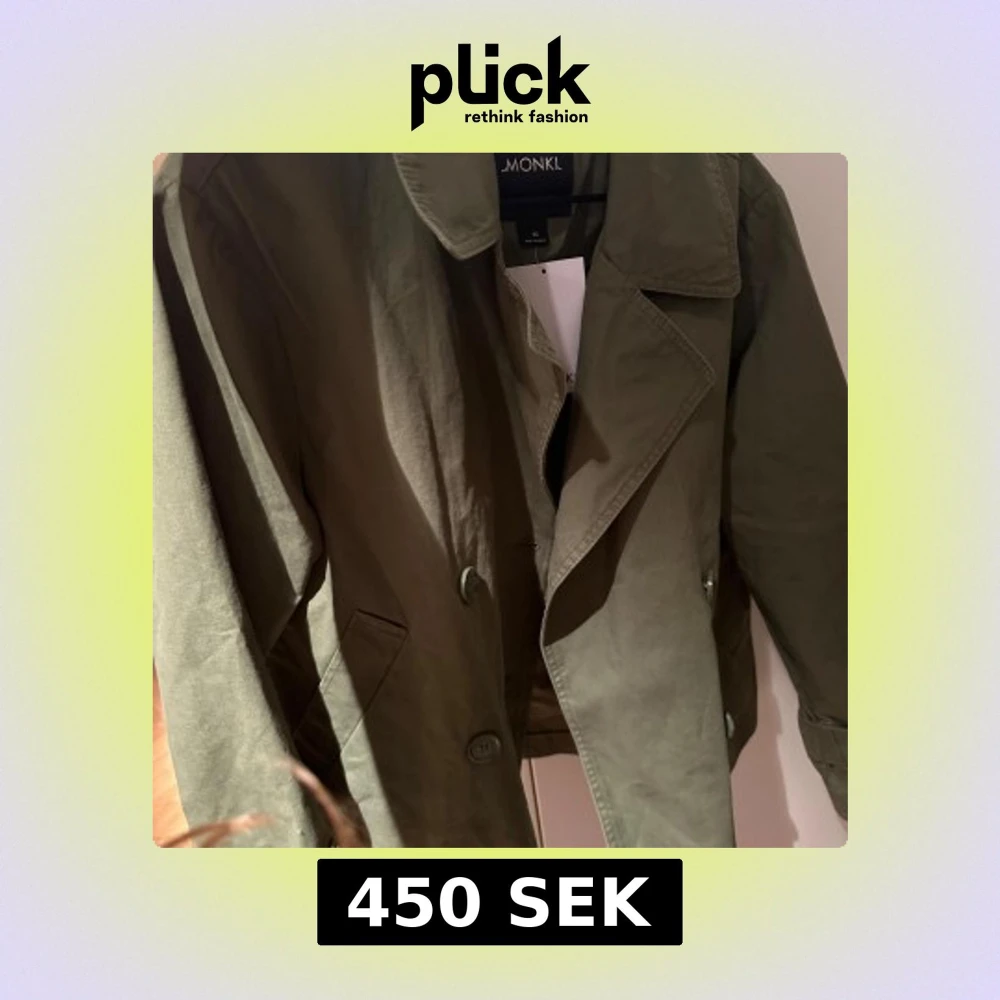 Säljer en stilren olivgrön jacka från Monki. Jackan har en klassisk krage och knäppning framtill. Perfekt för en avslappnad look.