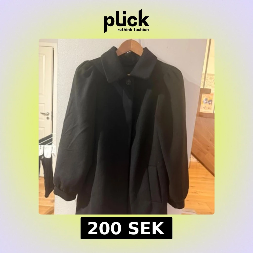 Snygg svart kappa med klassisk krage och puffade ärmar. Kappan har en enkel knäppning framtill och två fickor på sidorna. Perfekt för dig som gillar stilrena och tidlösa plagg med en twist på ärmarna. Från monki