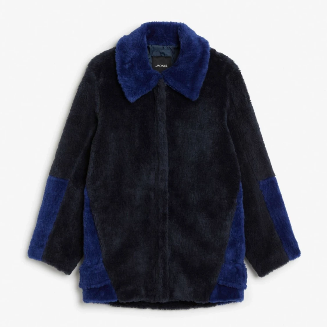 Fuskpälsjacka från Monki i strl L. Jag har vanligtvis M och den sitter snyggt oversize. Använd ett fåtal gånger så är i väldigt fint skick!! Kan skickas eller avhämtas i Malmö.