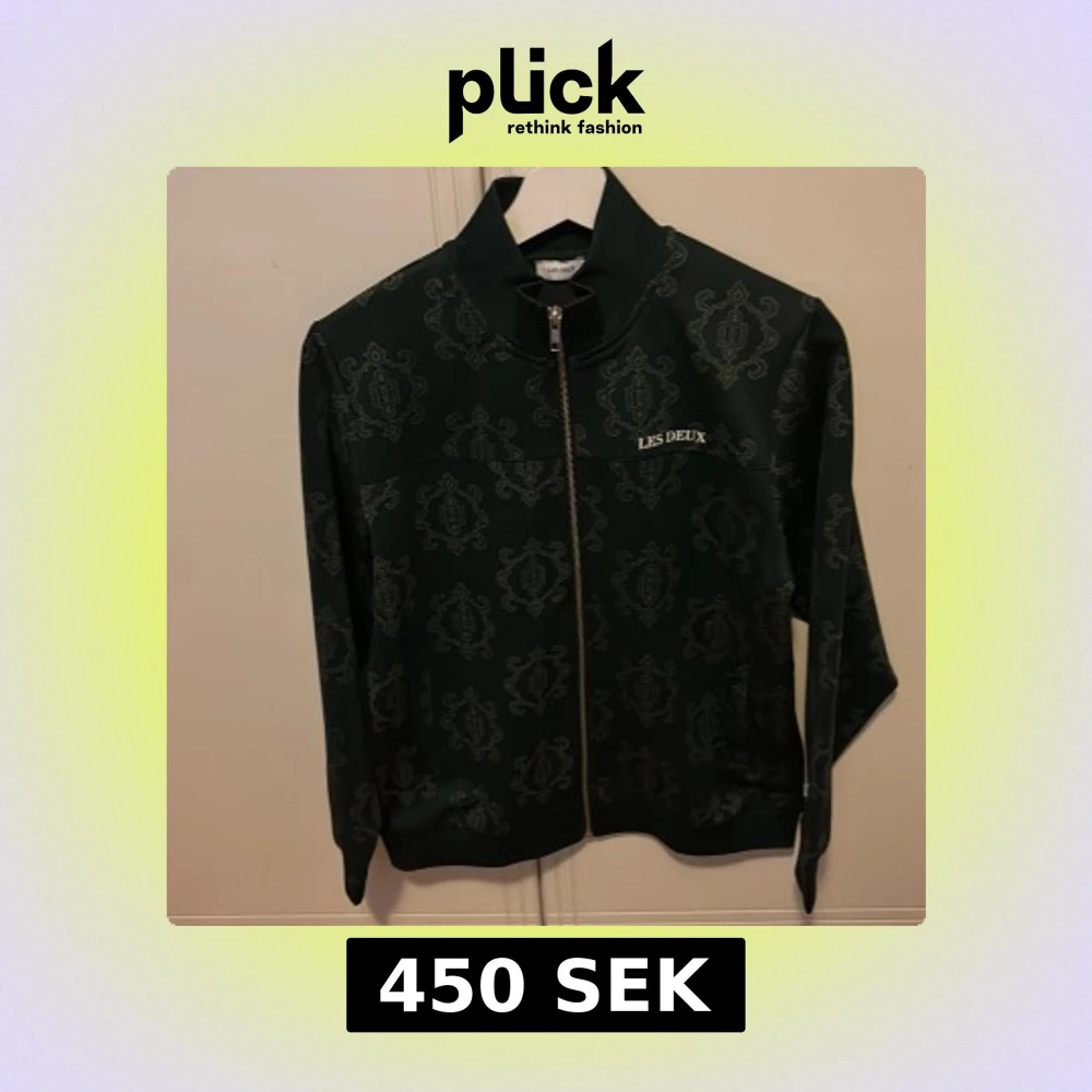 Snygg mörkgrön jacka från Les Deux med ett unikt mönster. Jackan har dragkedja framtill och ribbade muddar vid ärmslut och krage. Perfekt för en stilren look.