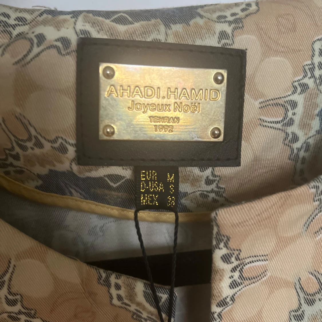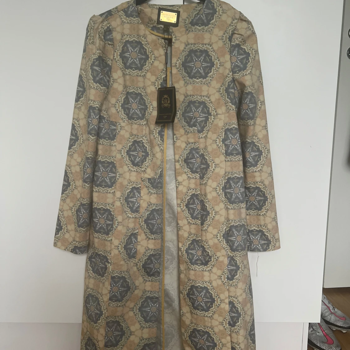 Unik kappa från Ahadi Hamid med snyggt geometriskt mönster i beige och grå toner. Långärmad och rak modell utan krage, perfekt för dig som vill sticka ut. Stängs med dold dragkedja framtill. Märke: Joyeux Noël, Tehran.