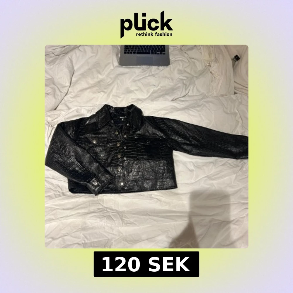 Snygg svart croppad jacka från Missguided med krokodilpräglat mönster och knappar framtill. Jackan har långa ärmar och två bröstfickor med knappdetaljer. Perfekt för en trendig look!